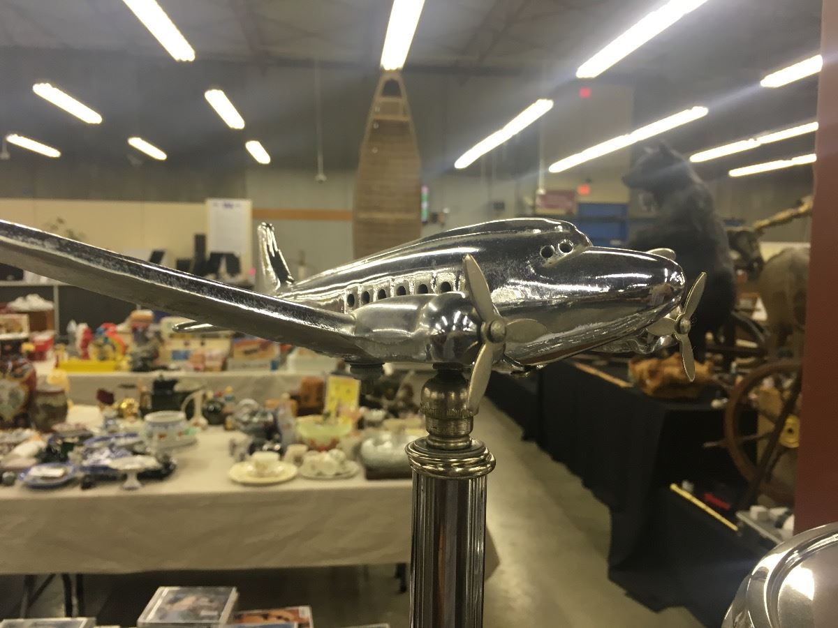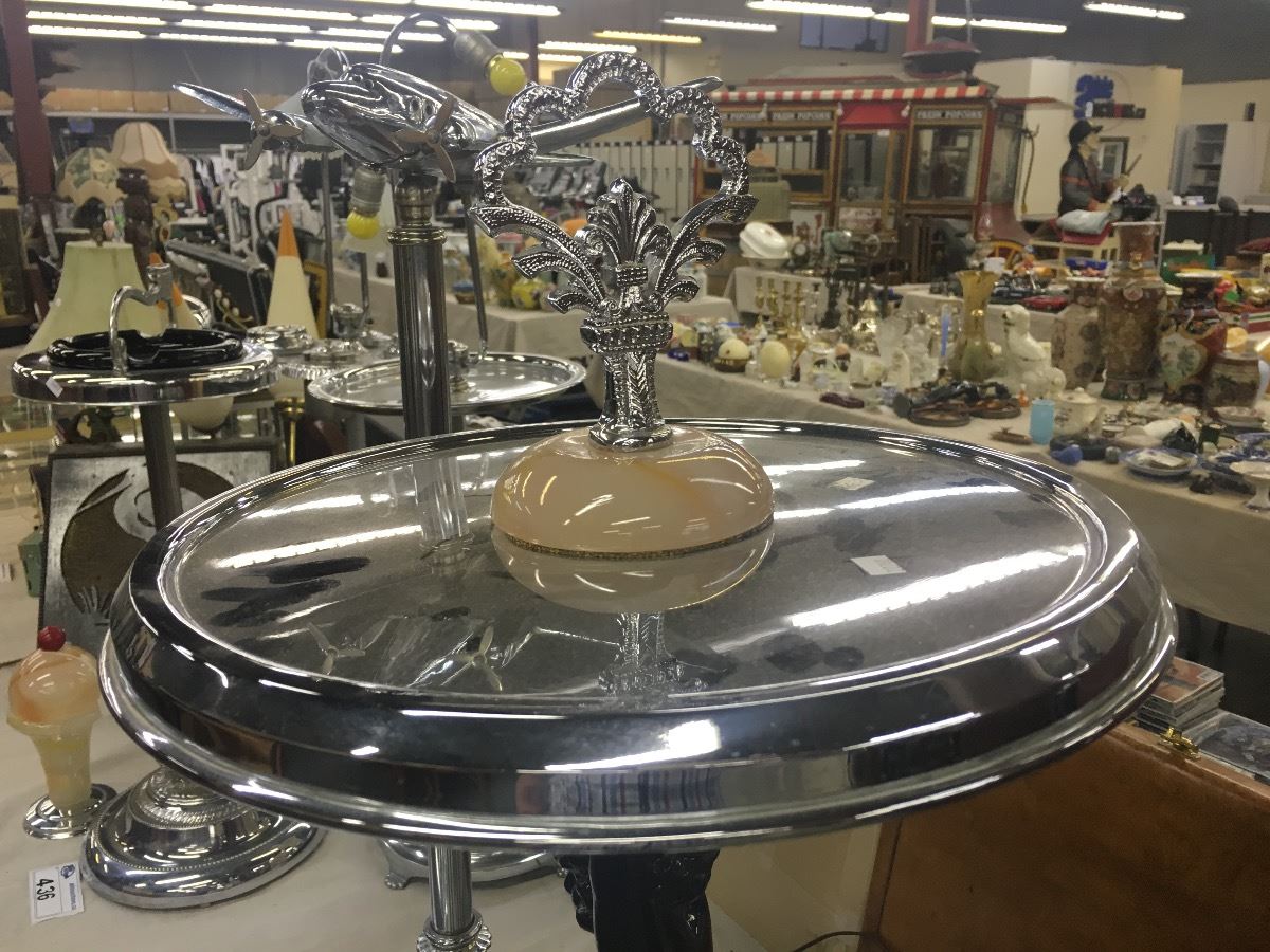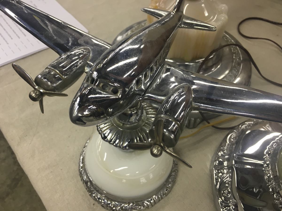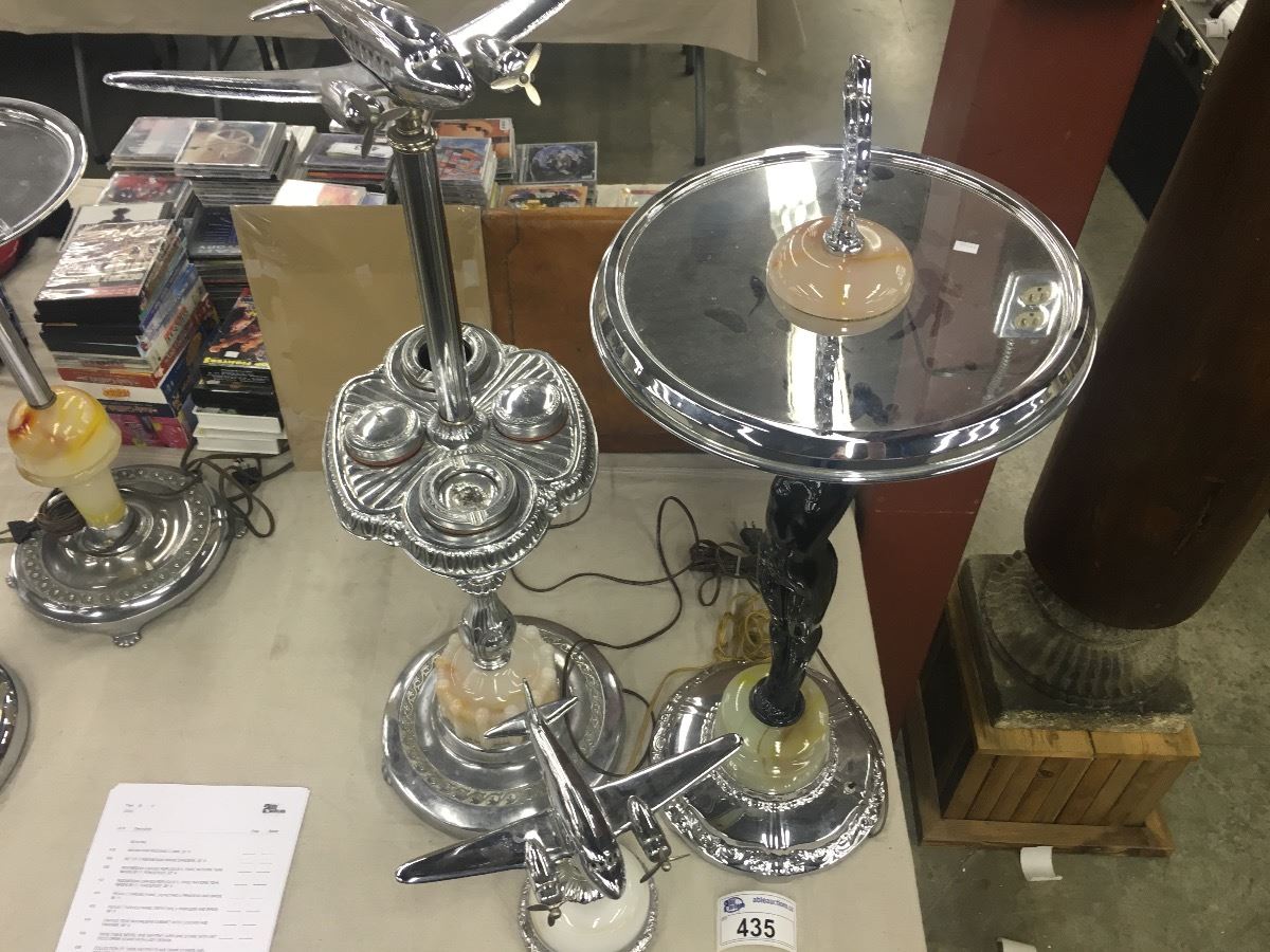 1950S TABLE MODEL AND ASHTRAY AIRPLANE STAND WITH ART DECO DRINK STAND WITH LADY DESIGN