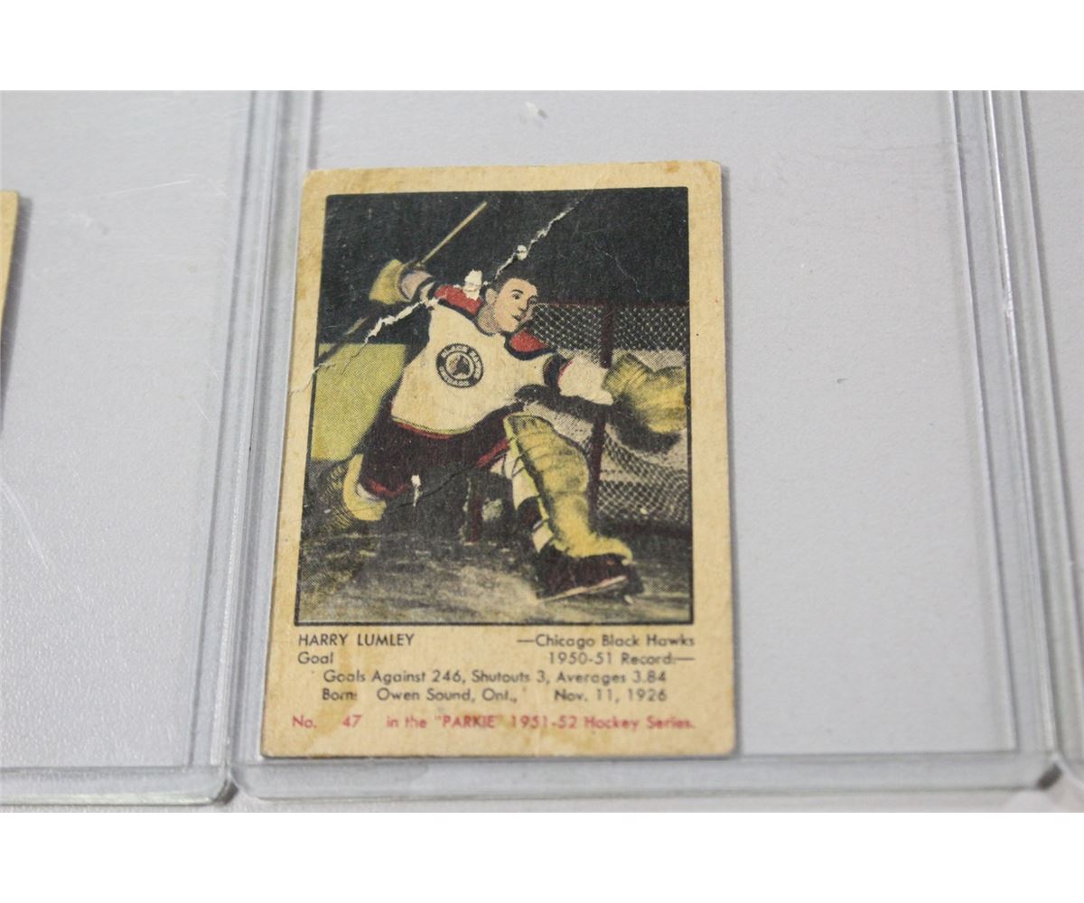 1951-52 PARKHURST NO. 15 GERRY MCNEIL, NO. 47 HARRY LUMLEY & NO. 76 AL ROLLINS