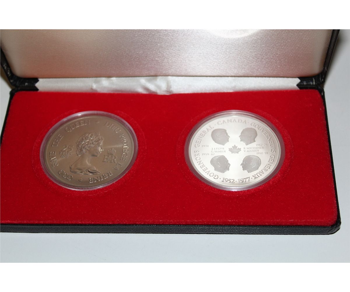 1952-1977 FOUR GOVENORS GENERAL MEDALLION SET. 1 COIN .925 STERLING SILVER PROOF & 1 COIN COPPER/NICKEL