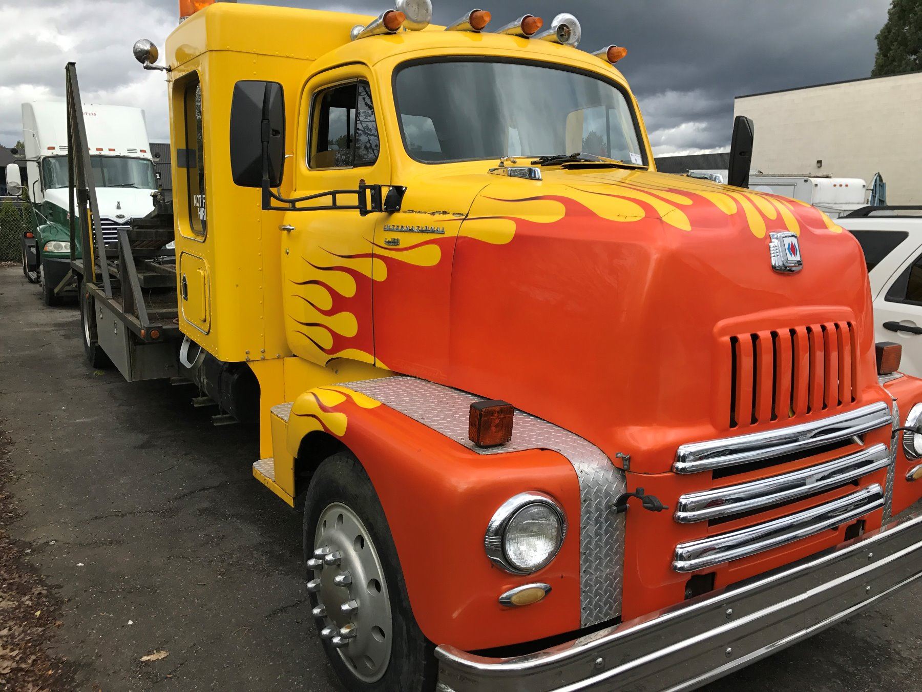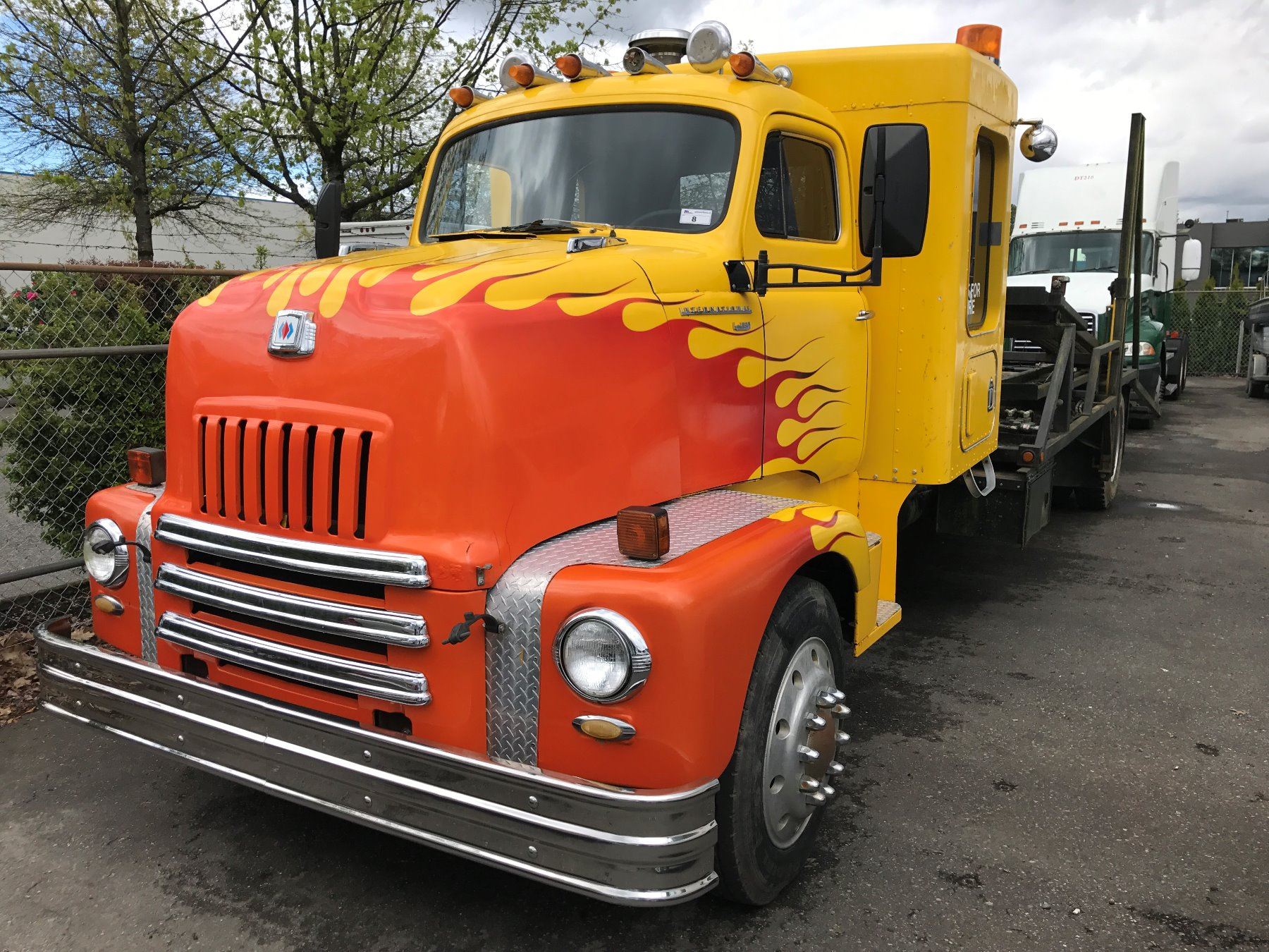 1952 INTERNATIONAL L-160 2 DOOR CREW CAB, YELLOW, VIN # TMU, DIESEL, AUTOMATIC 2 CAR HAULER, DT466 CHASSY, 22R5 WHEELS, AIR BRAKE, OUT OF PROVINCE, BUYER TO CERTIFY, *MUST TOW, NOT ROADWORTHY*