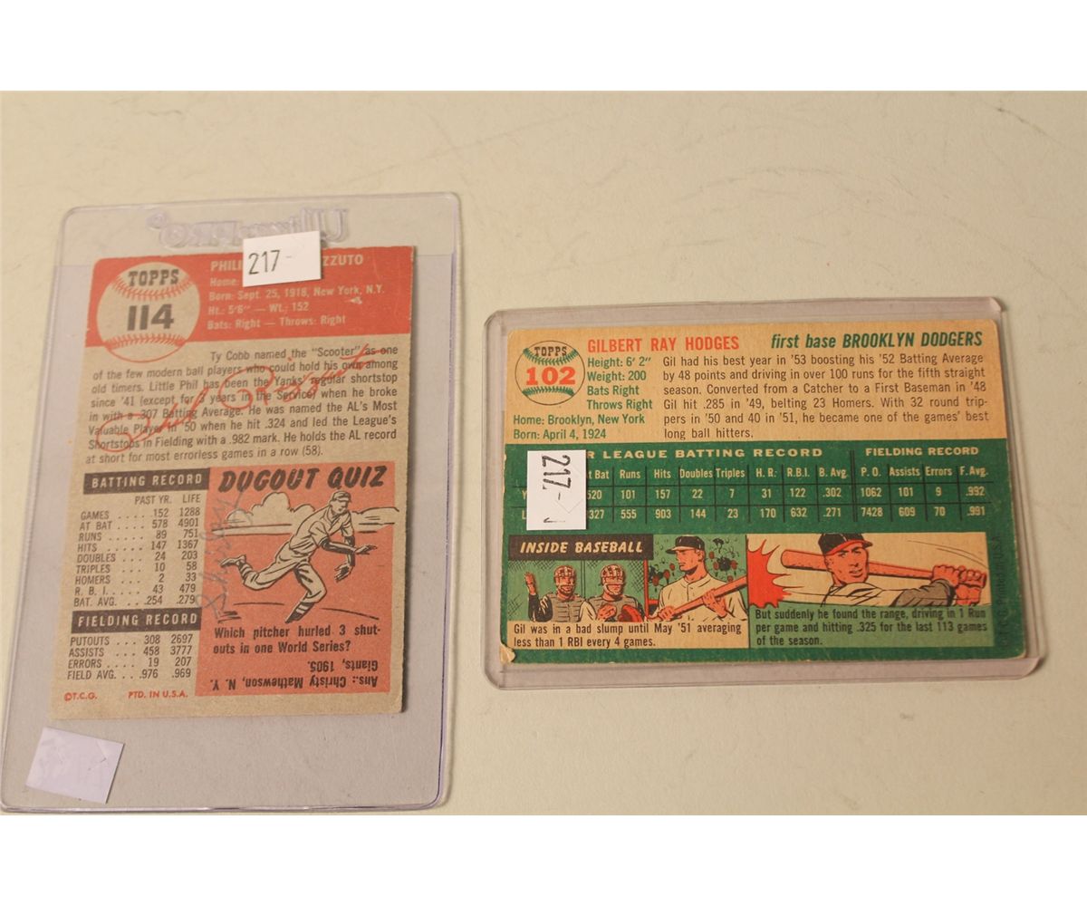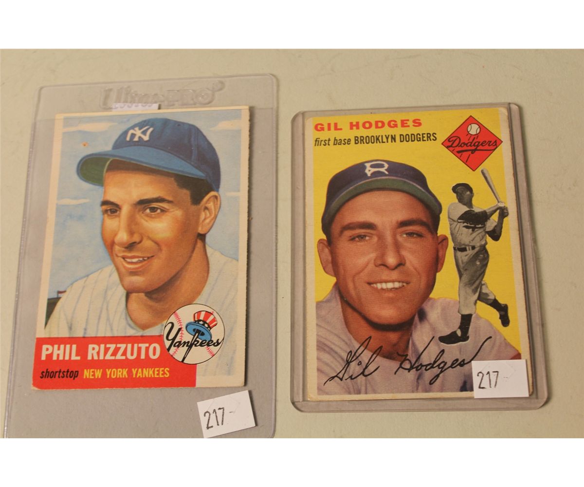 1953 TOPPS #114 PHIL RIZZUTO AND 1954 TOPPS #102 GIL HODGES