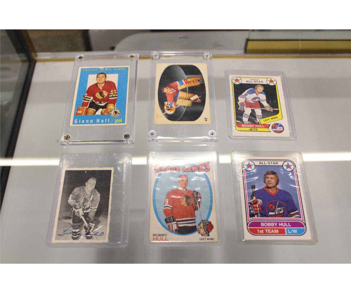 1959-60 GLENN HALL #32, 1962-63 JACQUES PLANT#49, 1971-72 OPC BOBBY HULL #30, 1975-76 OPC #65, 1971-72 OPC #50