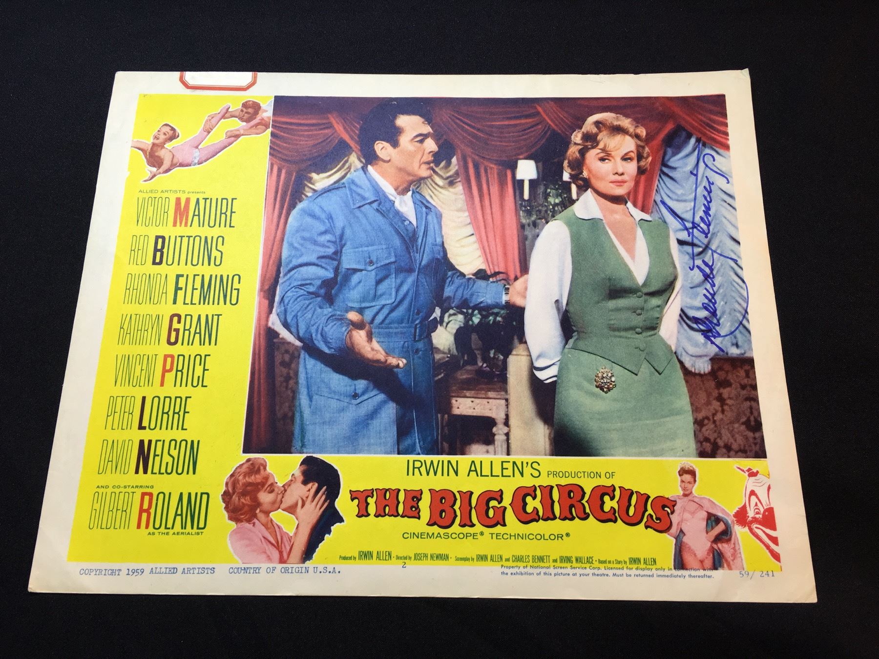 1959 "THE BIG CIRCUS" LOBBY SCENE CARD, #2 IN SET, SIGNED BY RHONDA FLEMING