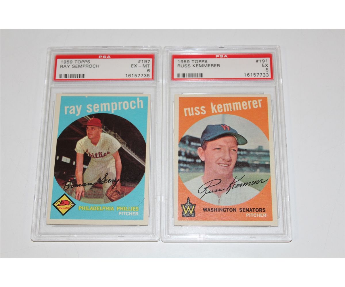 1959 TOPPS RAY SEMPROCH #197 PSA GRADED 6 AND RUSS KEMMERER #191 PSA GRADED 5