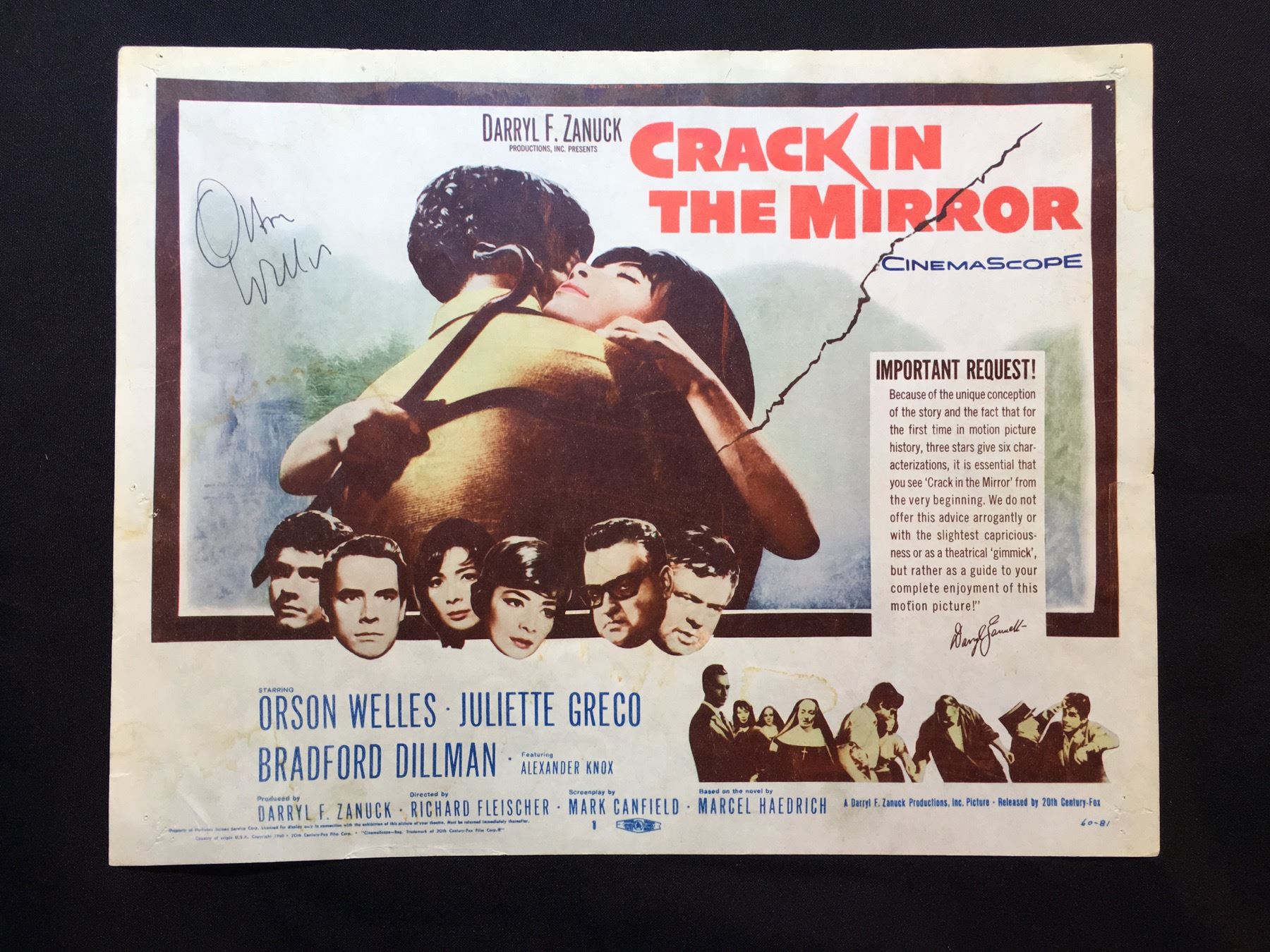 1960 "CRACK IN THE MIRROR" LOBBY TITLE CARD, #1 IN SET, SIGNED BY ORSON WELLS