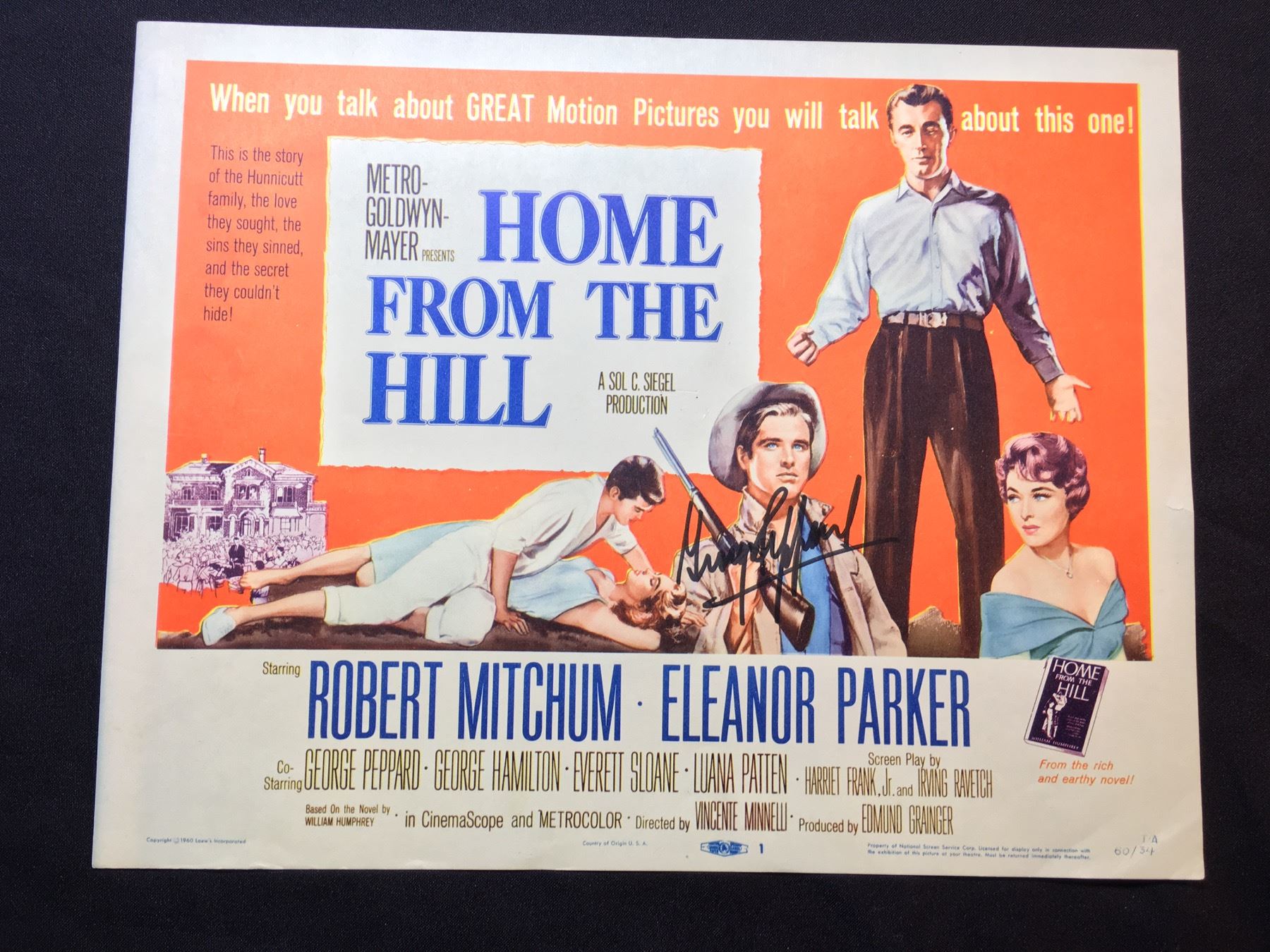 1960 "HOME FROM THE HILL" LOBBY TITLE CARD, #1 IN SET, SIGNED BY GEORGE PAPPARD