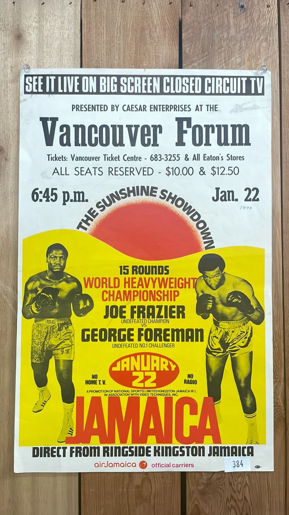 1973 KINGSTON JAMAICA THE SUNSHINE SHOWDOWN JOE FRAZIER VS GEORGE FOREMAN BOXING POSTER