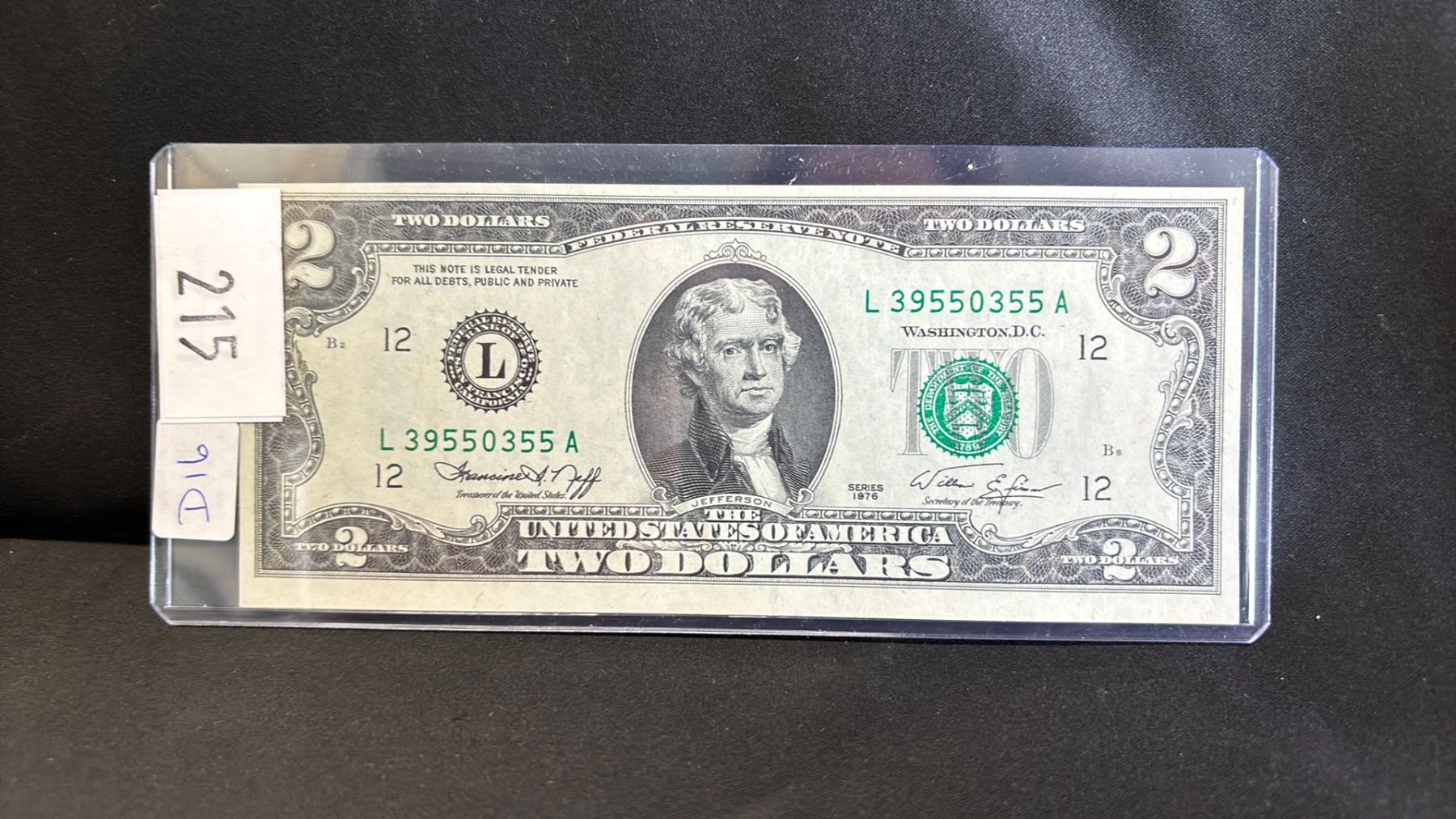 1976 AMERICAN 2 DOLLARS BILL IN SLEEVE