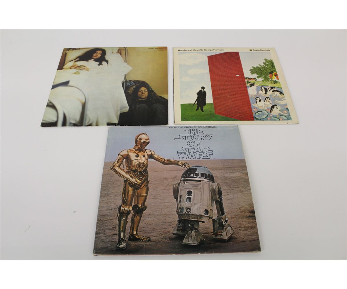 1977 STORY OF STAR WARS LP, NARRATION OF ENTIRE MOVIE. RECORD IN GREAT SHAPE. COMES WITH ILLUSTRATED BOOK. GEORGE HARRISON'S WONDERWALL MUSIC, RELEASED ON APPLE RECORDS - THE FIRST BEATLE SOLO ALBUM. ALSO INCLUDES UNFINISHED MUSIC NO. 2, JOHN & YOKO- RARELY PLAYED