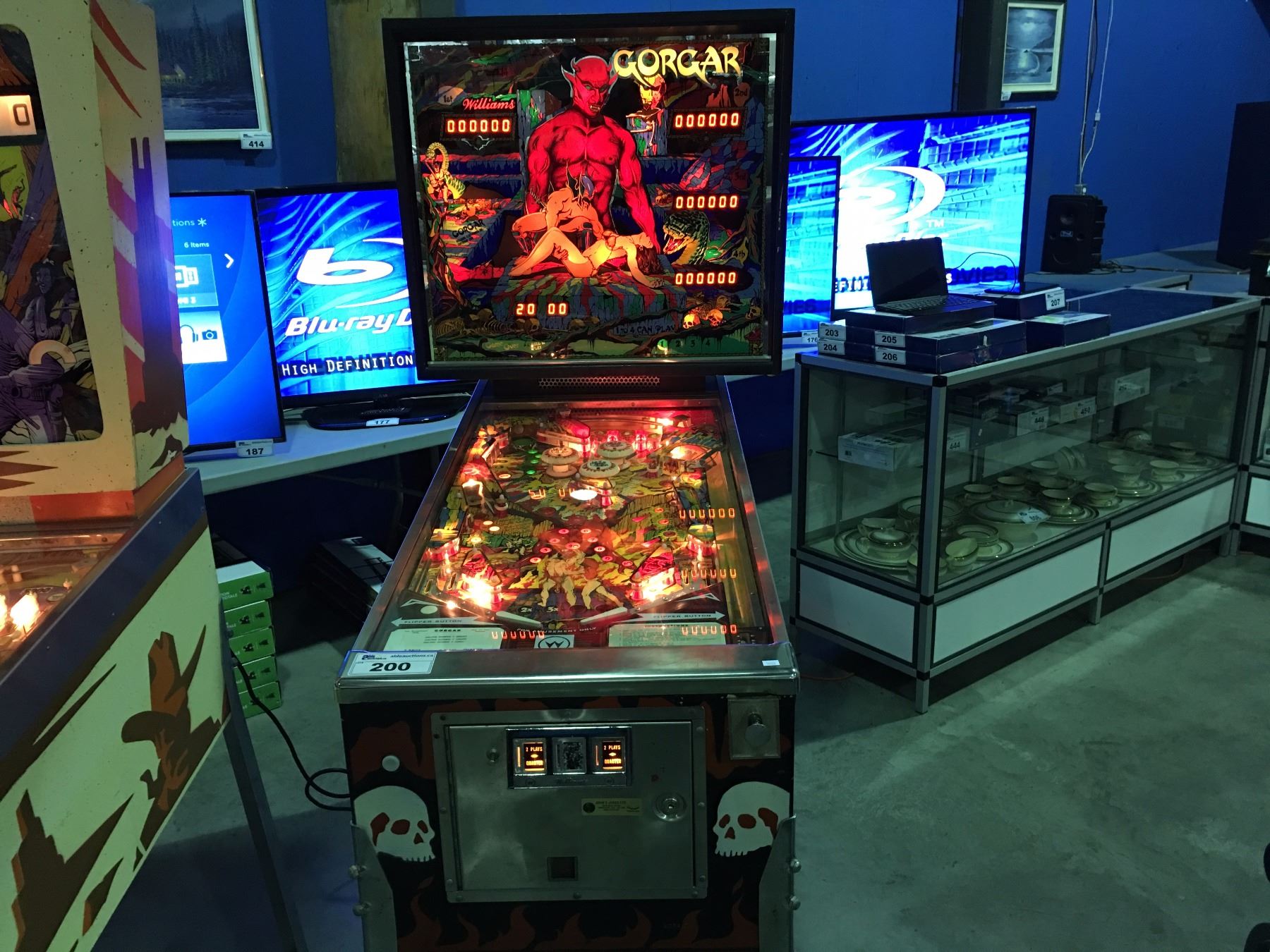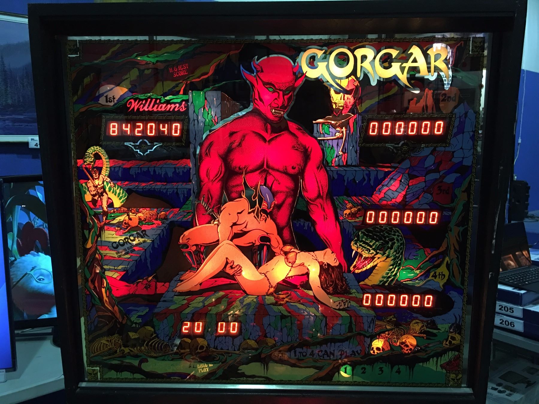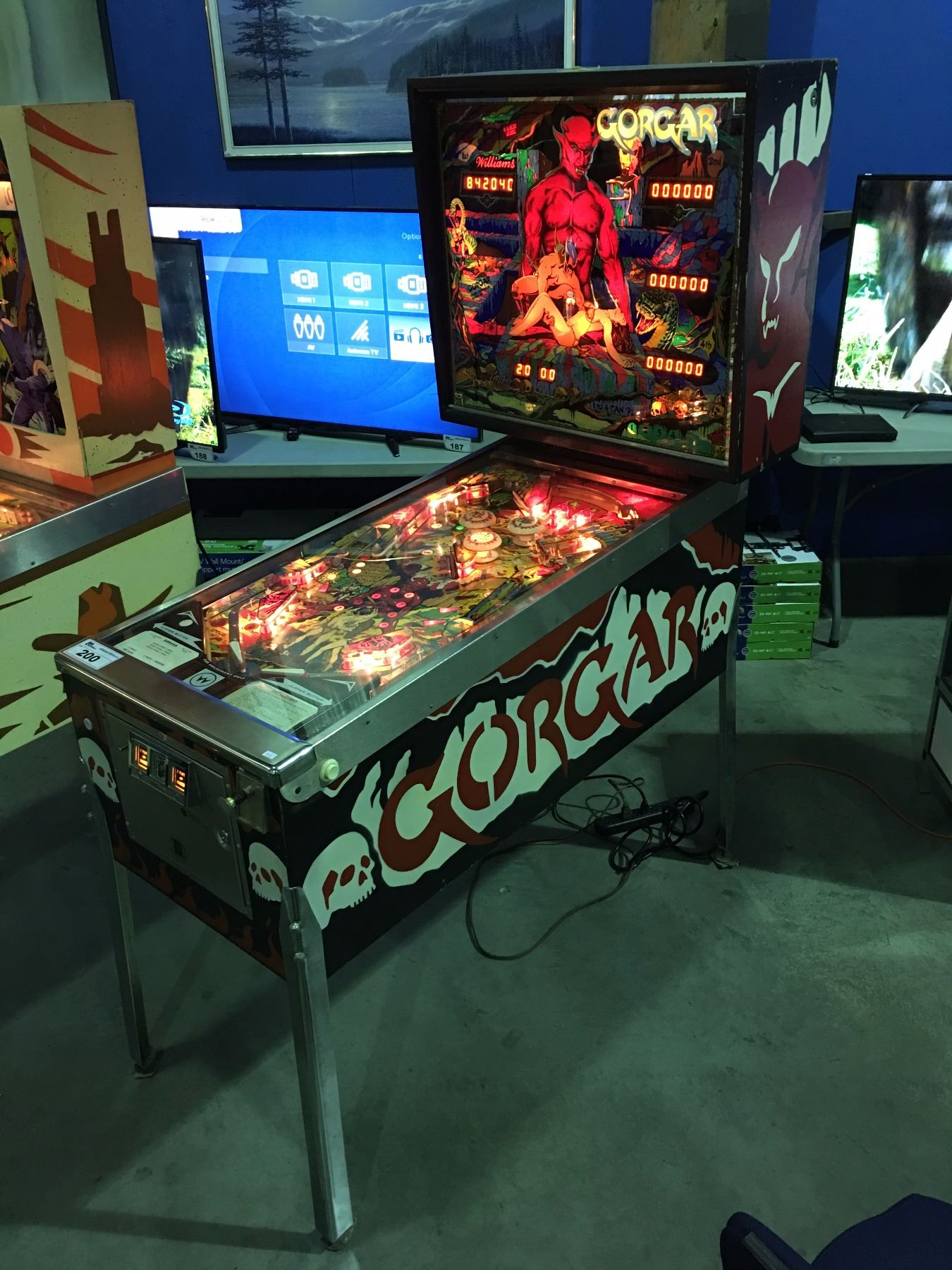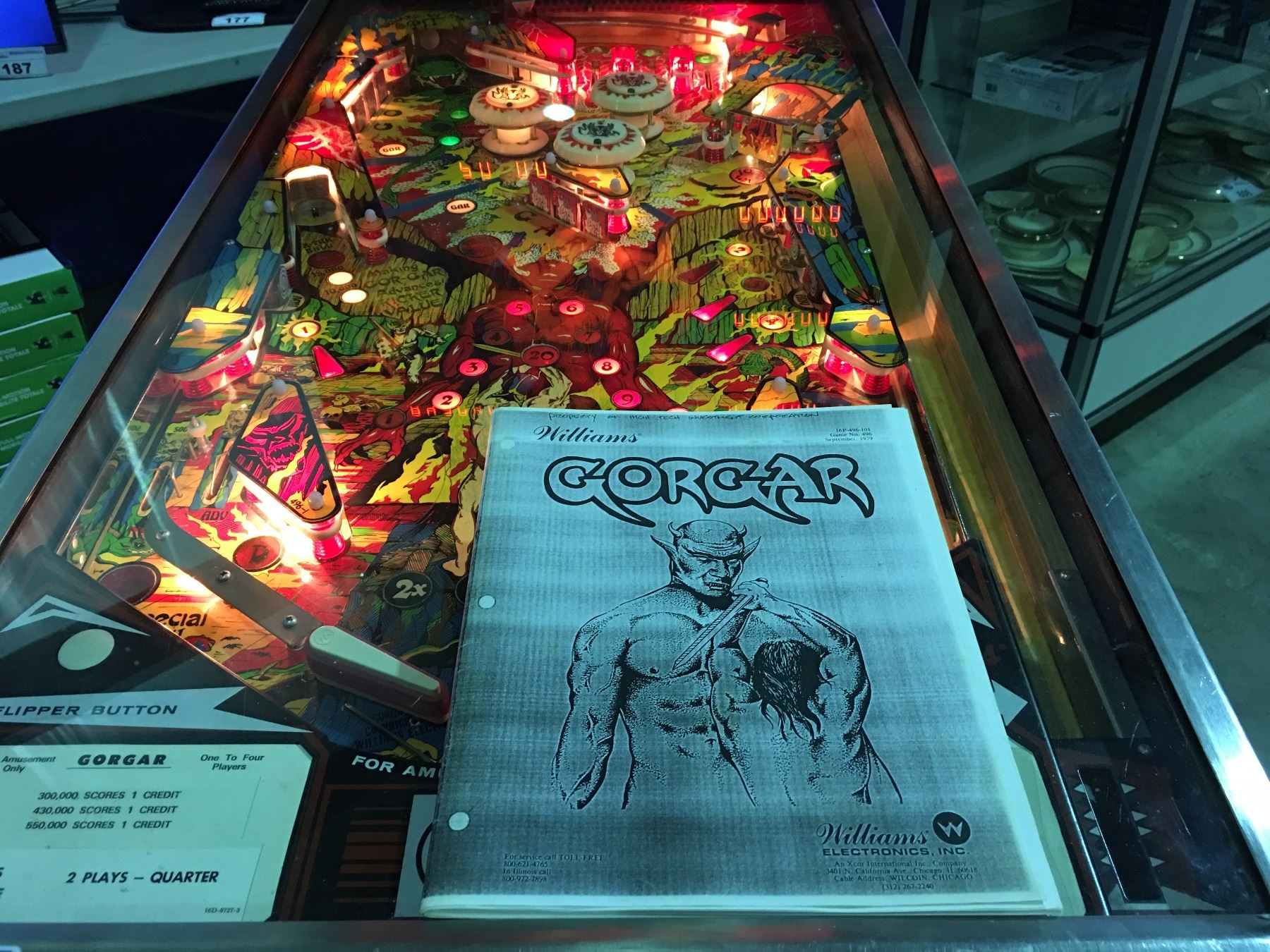 1979 GORGAN BY WILLIAMS CHICAGO IL. PINBALL MACHINE ( FIRST SPEAKING PINBALL WITH 7 WORD VOCABULARY , ORIGINAL BACK GLASS INTACT) COMES W/KEY & MANUAL