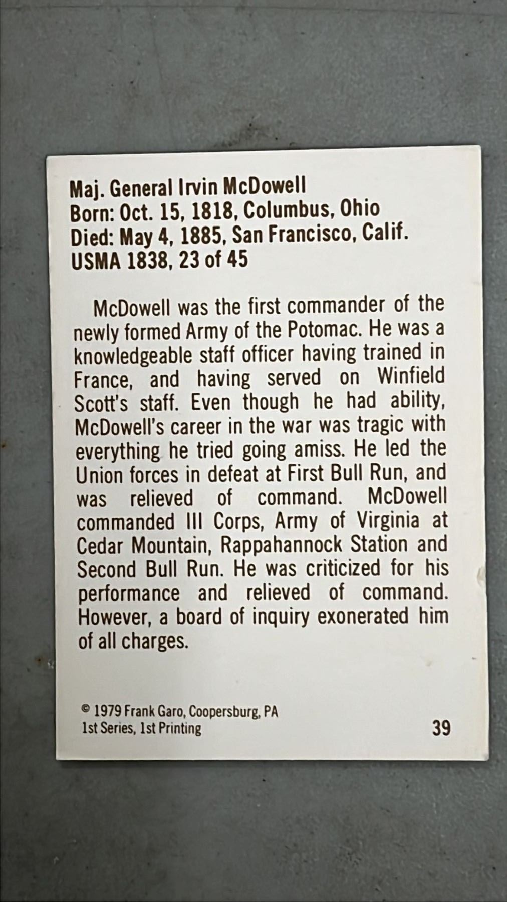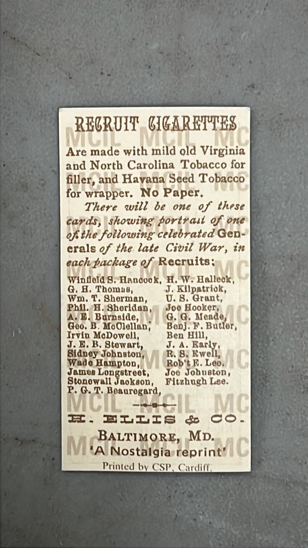 1979 VINTAGE FAMOUS CIVIL WAR GENERALS COLLECTIBLE CARDS & COLLECTIBLE CIGARETTE CARDS