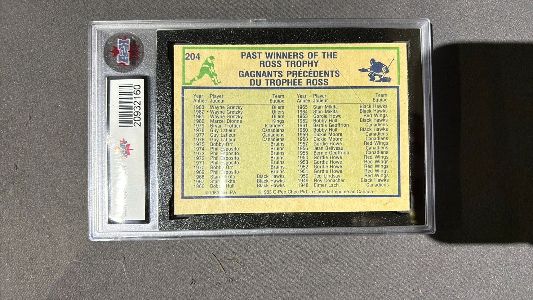 1983-1984 O-PEE-CHEE WAYNE GRETZKY ART ROSS TROPHY, KSA GRADED 7.5NM+