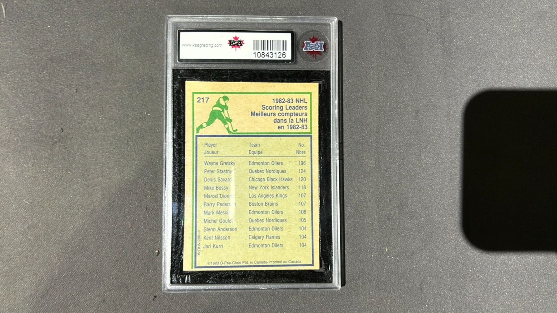 1983-1984 O-PEE-CHEE WAYNE GRETZKY SCORING LEADEAR #212, KSA GRADED 7NM