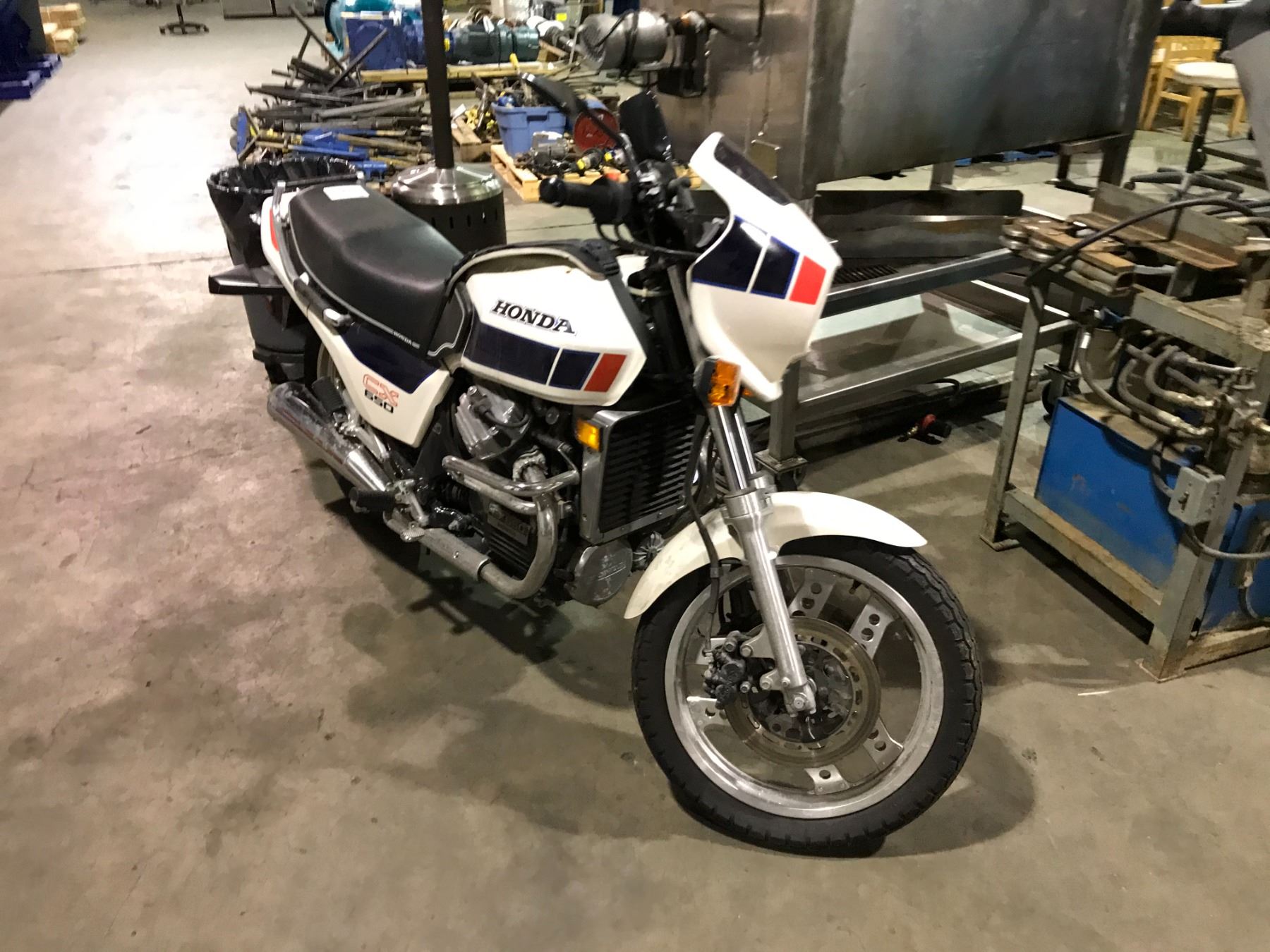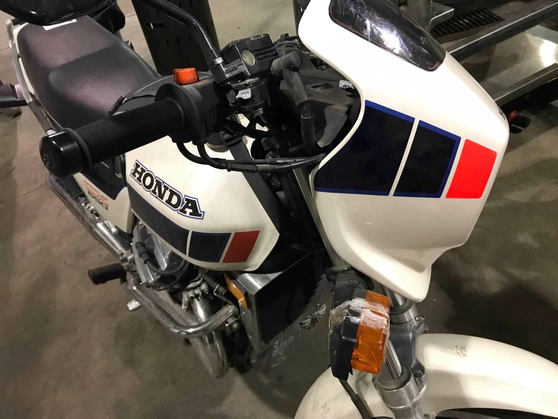 1983 HONDA CX 650, MOTORCYCLE, WHITE, VIN # DM000602 5,025KMS, GAS UNKNOWN RUNNING ORDER, *NO REGISTRATION EVER, PARTS ONLY, MUST TOW*