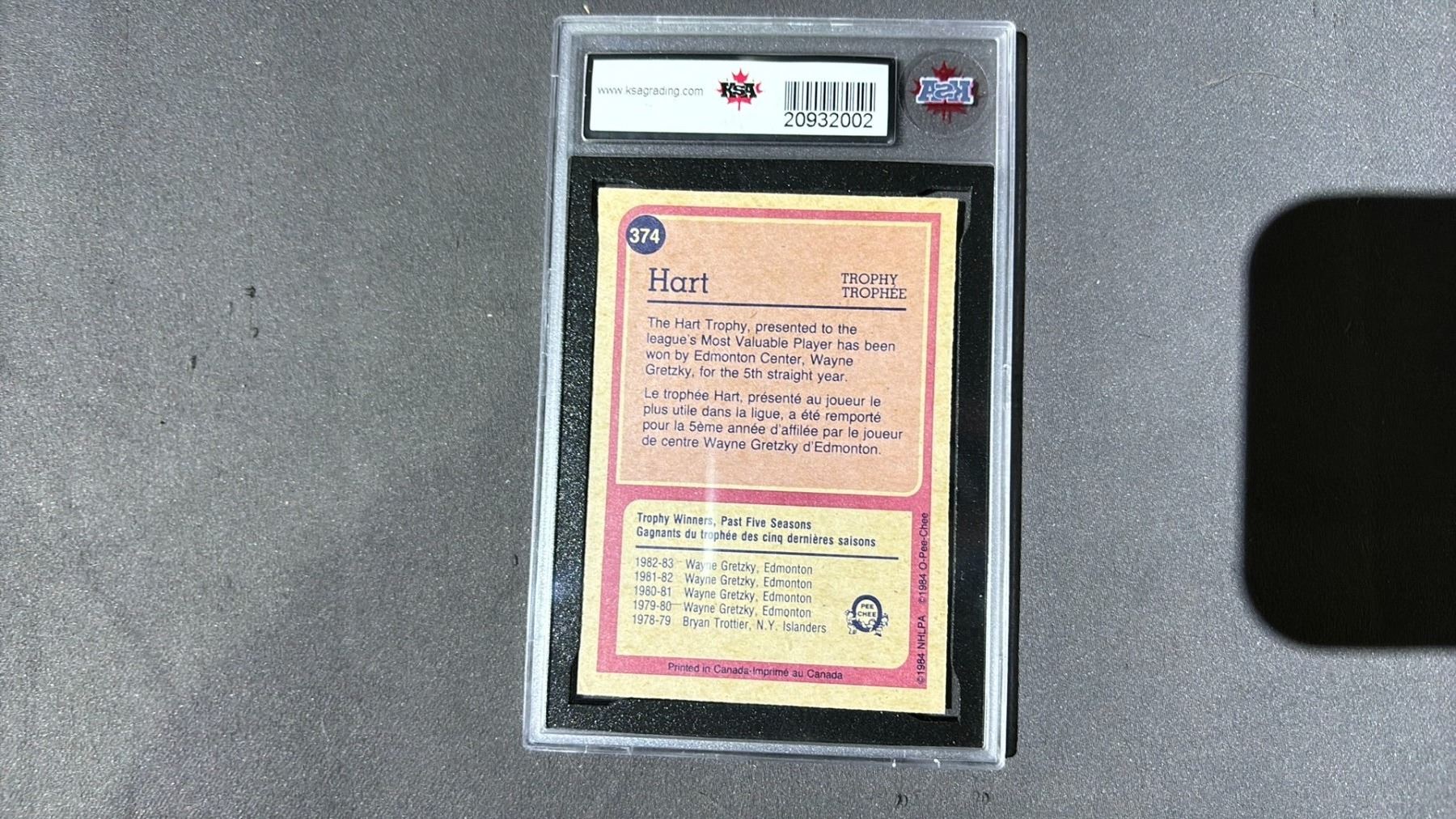 1984-1985 O-PEE-CHEE WAYNE GRETZKY HART TROPHY #374, KSA GRADED 6.5+ ENM+