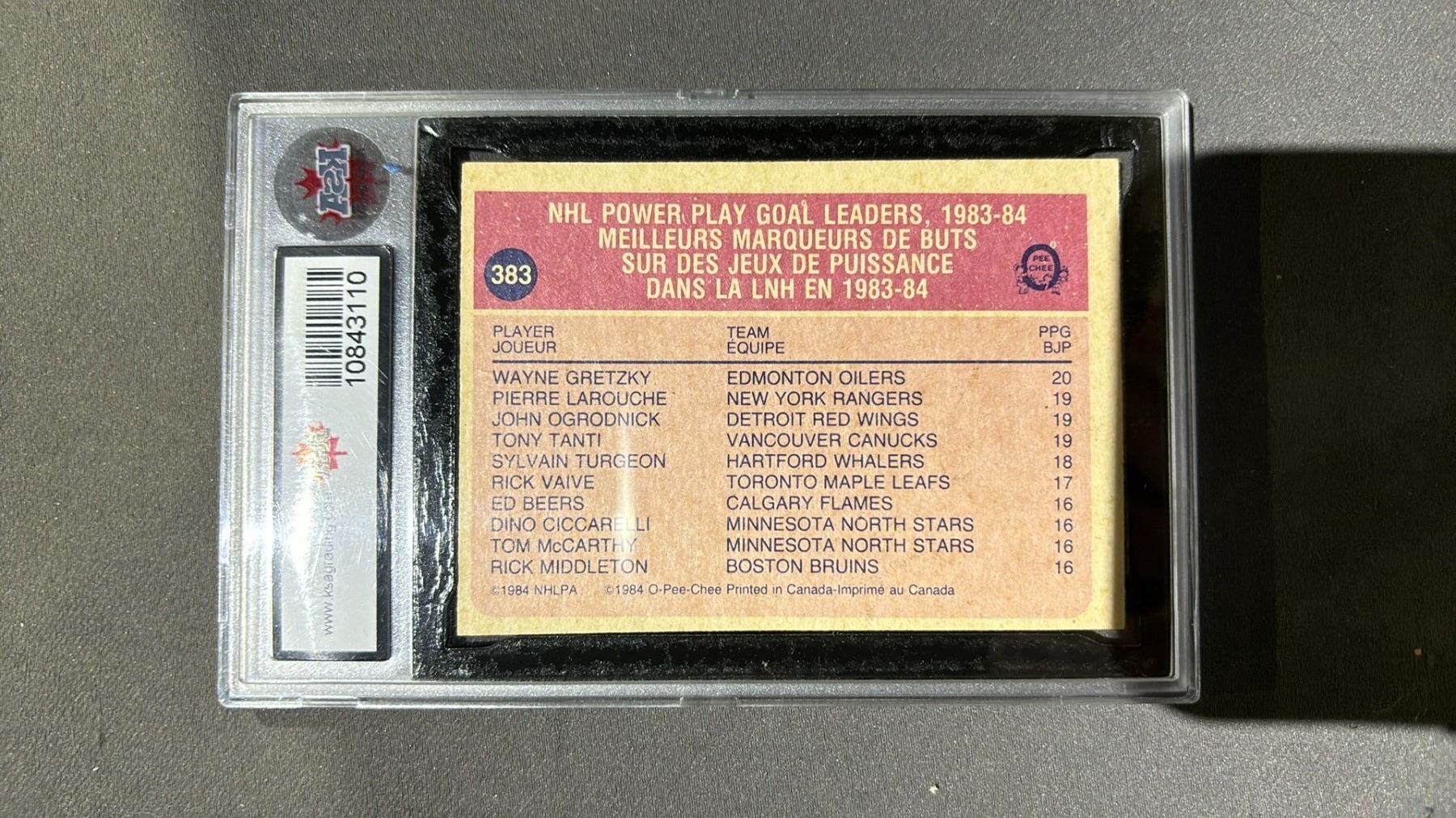 1984-1985 O-PEE-CHEE WAYNE GRETZKY SCORING LEADER 383, KSA GRADED - 7NM