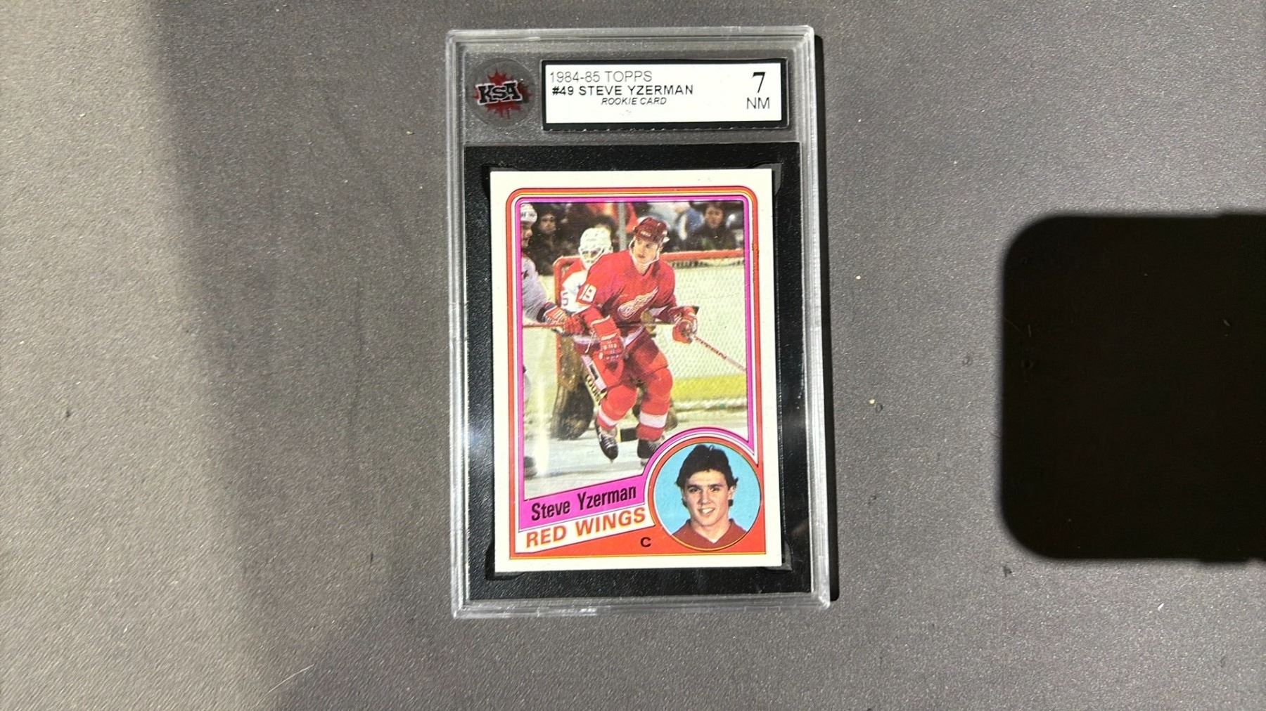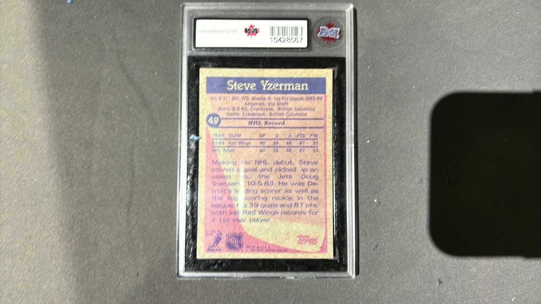 1984-1985 TOPPS STEVE YZERMAN ROOKIE #49, KSA GRADED 7NM
