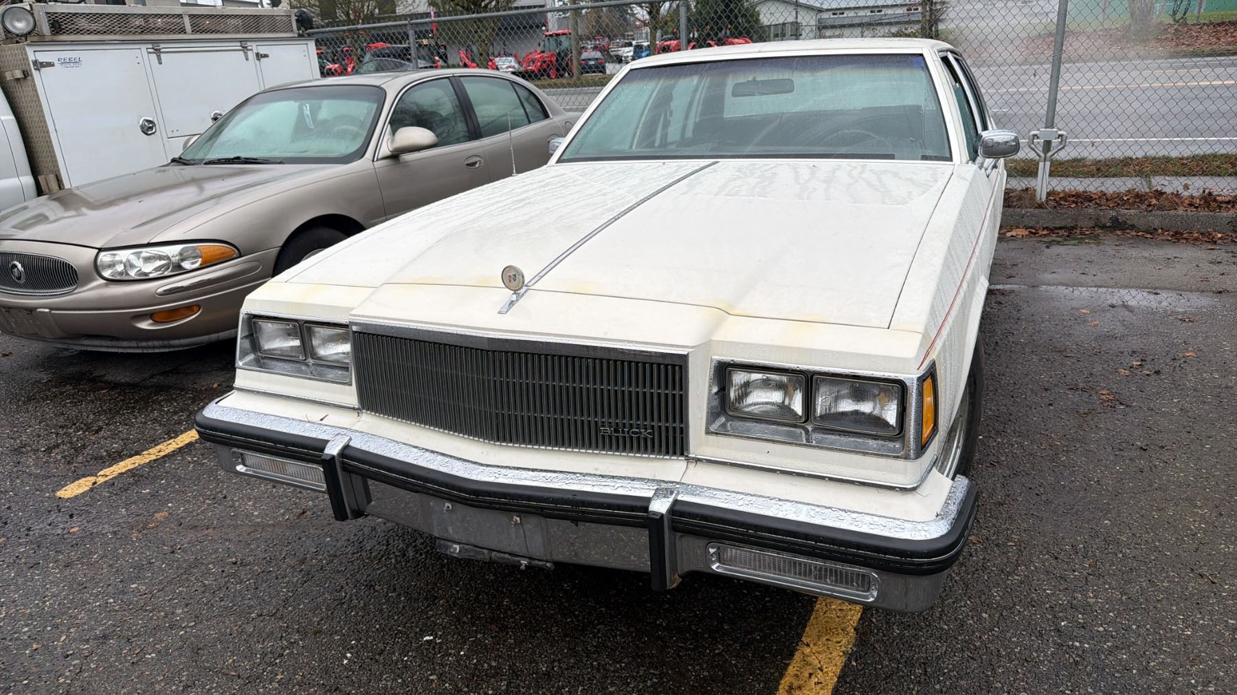 1985 BUICK LESABRE COLLECTORS LIMITED EDITION, 4 DR SEDAN, WHITE, VIN 1G4BP69Y6FX439053, TMU,5 DIGIT ODOMETER READS 78,539 KMS, GAS (G), V8 307CI, AUTOMATIC, HAS REGISTRATION, HAS KEYS, FEATURES: RADIO, POWER WINDOWS, CRUISE CONTROL, POWER SEATS, QUAD SEATS, ALLOY WHEELS, POWER LOCKS, TILT WHEEL, AIR COND, LEATHER TRIM, HISTORY: OOP, ICBC REPAIRED DEC $84.00, NO OOP DECLARATIONS, BACK DRIVERS SIDE WHEEL WELL, PAINT CHIPPING DRIVERS SIDE WHEEL WELL