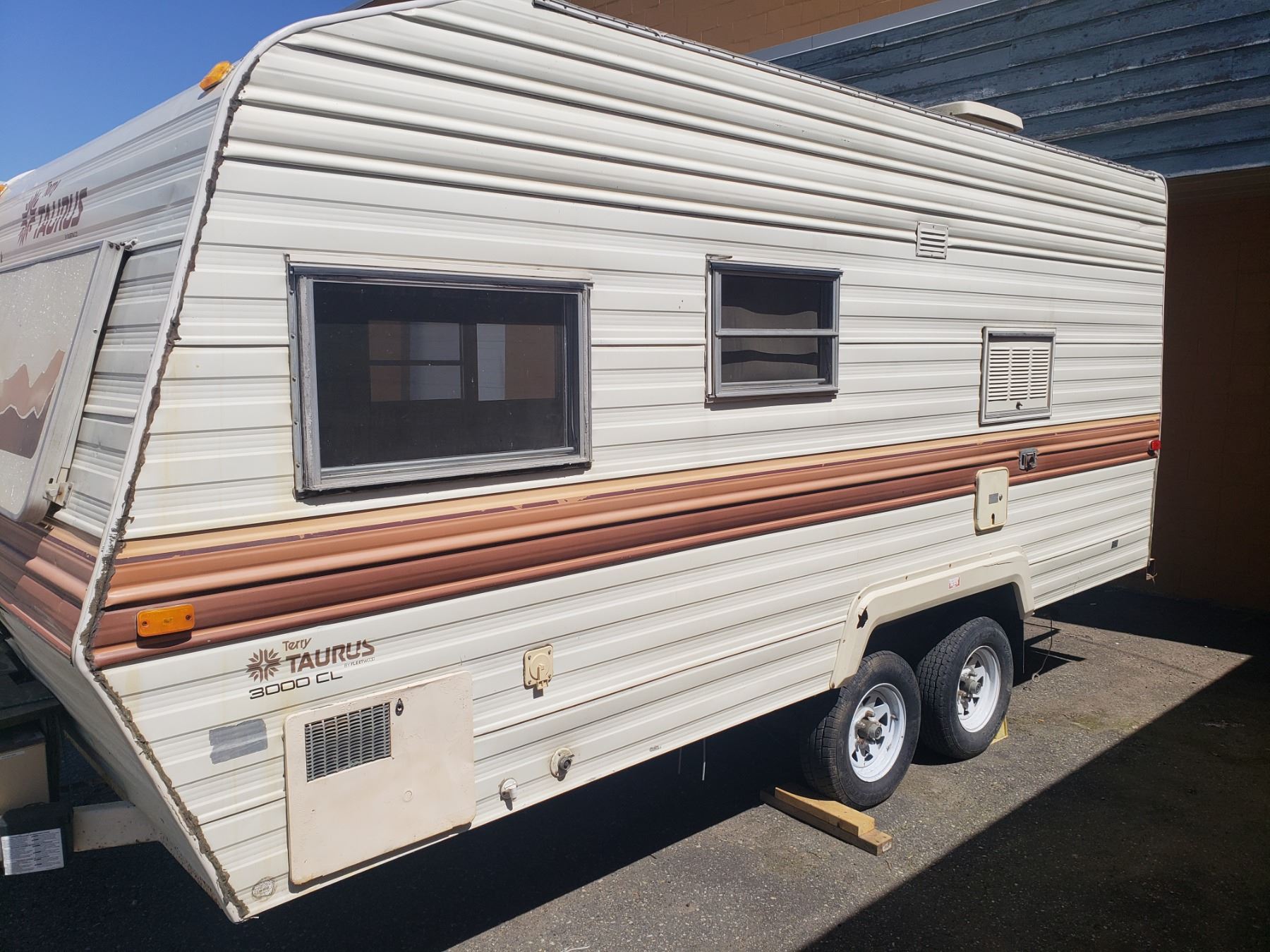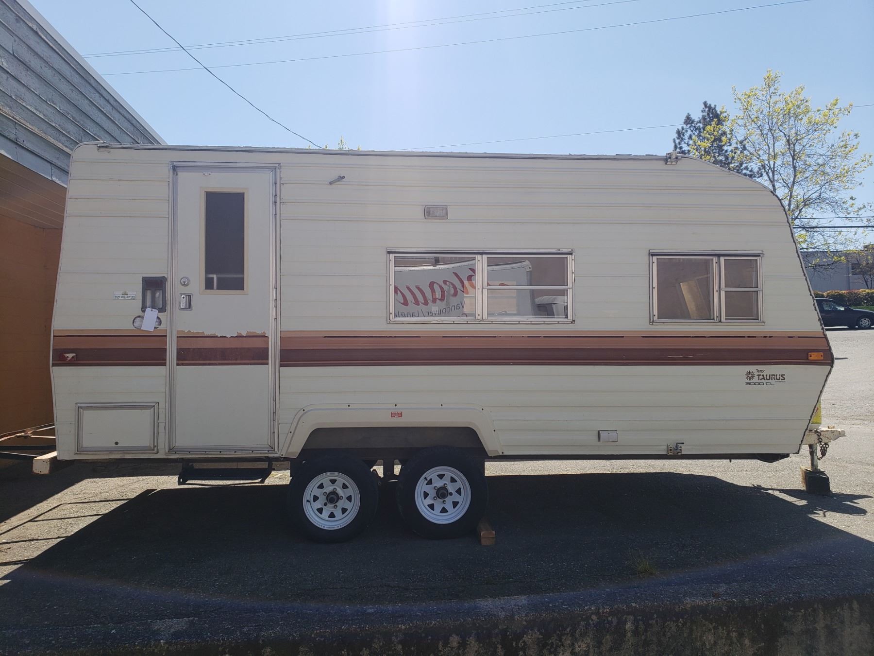 1985 TAURUS TRAVEL TRAILER, WHITE, VIN#2EB3F1925F6529366, OOP NO ICBC DECLARATIONS, APPROX 19'