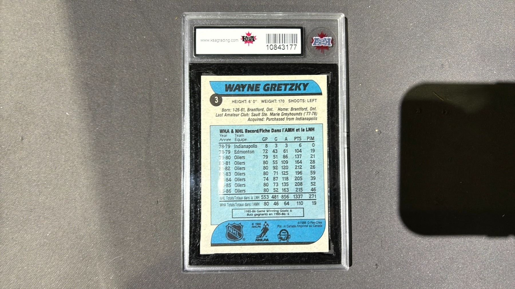 1986-1987 O-PEE-CHEE WAYNE GRETZKY #3, KSA GRADED - 6.5 ENM+