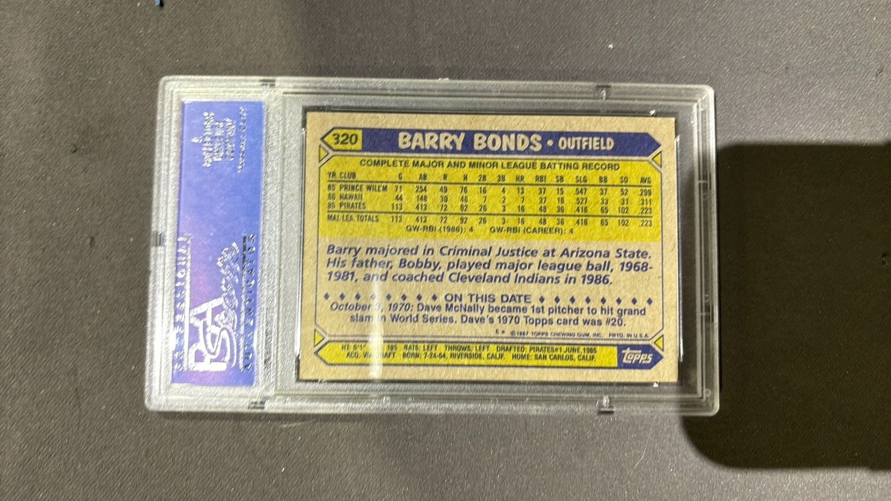 1987 LEAF BARRY BONDS ROOKIE 219, KSA GRADED - 6.5 ENM+