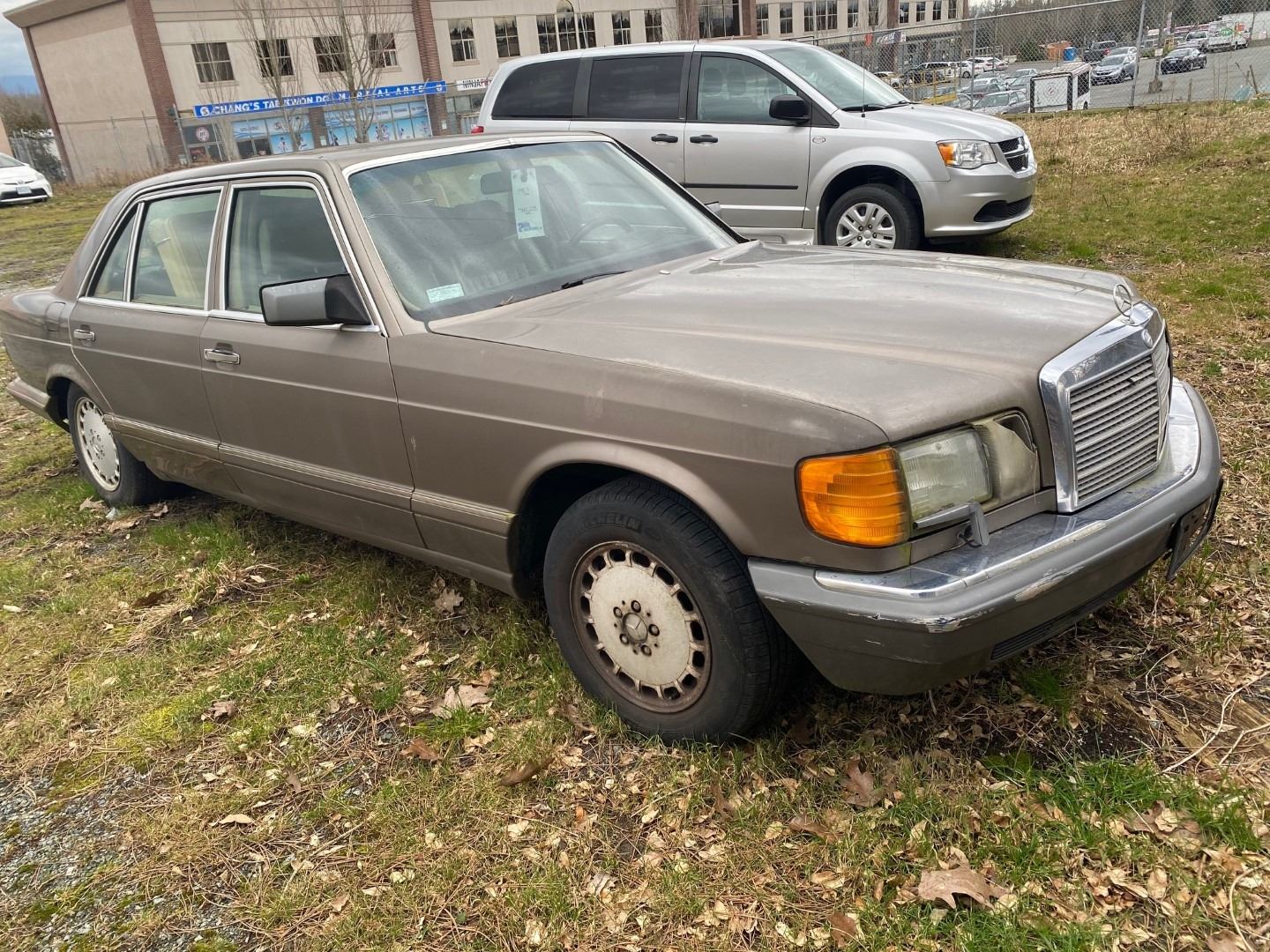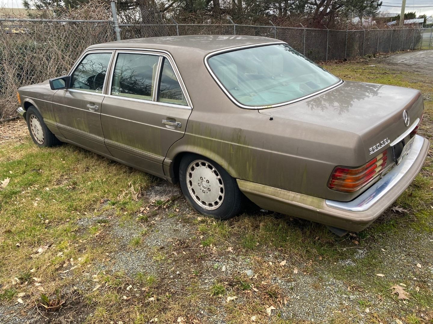 1987 MERCEDES 560 SEL *WITH CONTENTS*, BROWN, 4DRSD, *MUST TOW, NOT ROADWORTHY, DEAD BATTERY* VIN#WDBCA39D2HA317140, 465,228KMS, RD,PW,CC,PS,AW,TW,TW,AC,LT,CR, CRACKED WINDOW, DRIVER SEAT SUNKEN, 1 ICBC ESTIMATE $1927.84, 5 ICBC REPAIRED DECLARATIONS $6796.94, 3 ICBC DECLARATIONS NO DETAILS