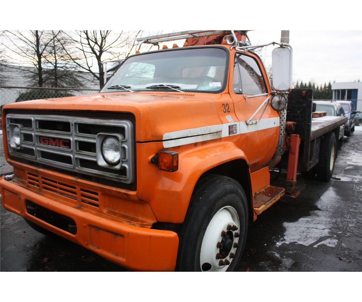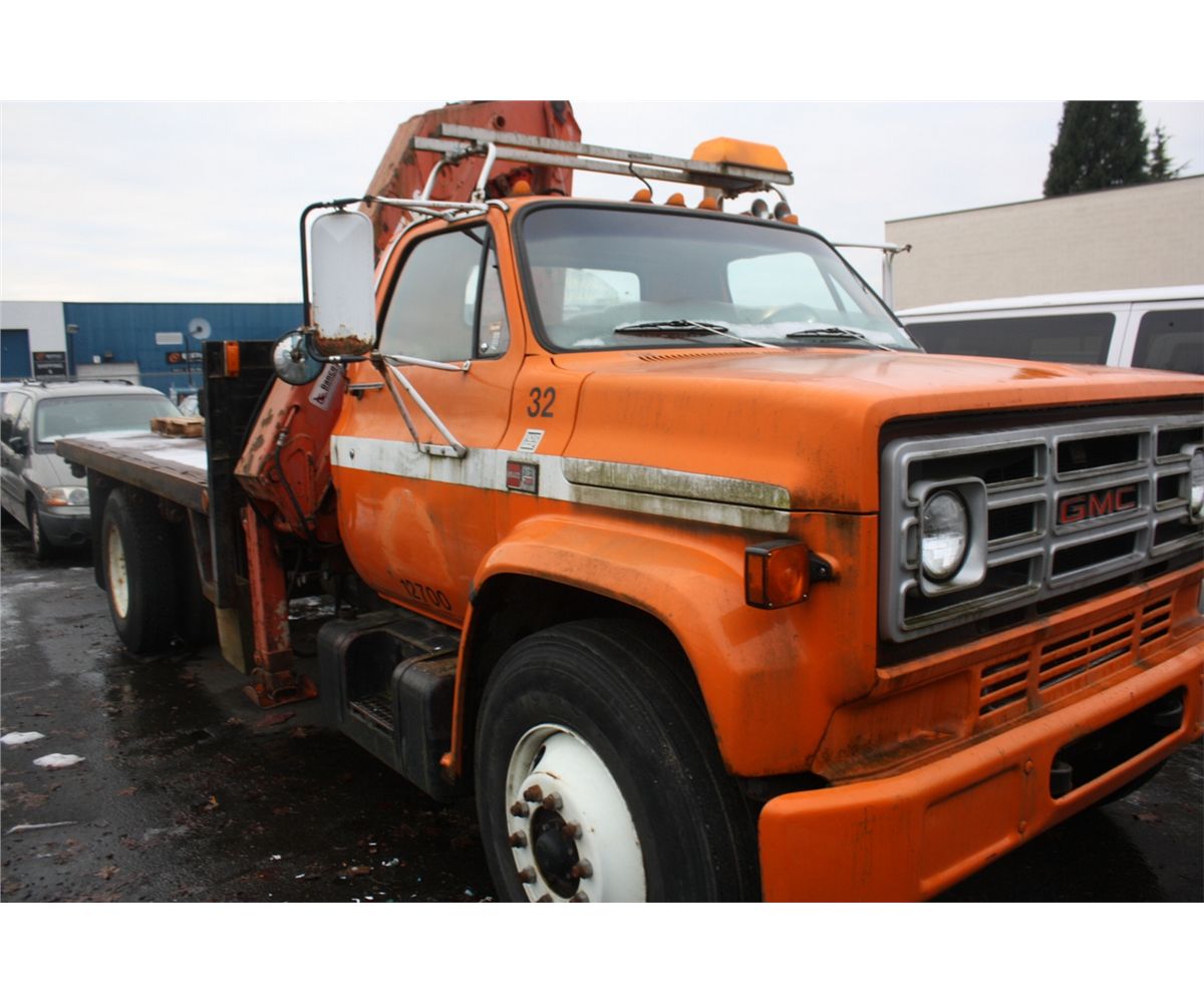 1987 ORANGE GMC 7000 FLAT DECK 56,427KM DIESEL AUTOMATIC VIN:1GDM7D1G9HV506503 - 3698 HOURS - ATLAS HIAB - DEAD BATTERY - AIRCARE REQUIRED - VIN SEARCH CAME UP NO DETAILS