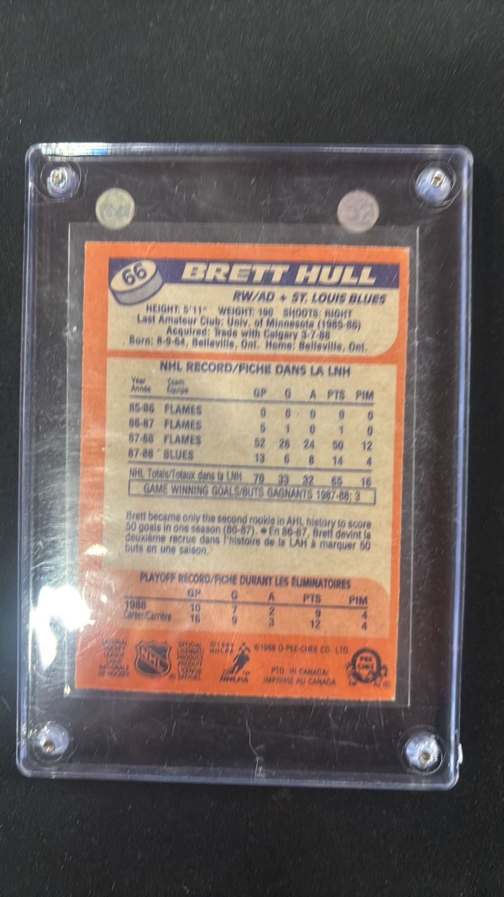 1988 O-PEE-CHEE #66 BRETT HULL ROOKIE HOCKEY CARD