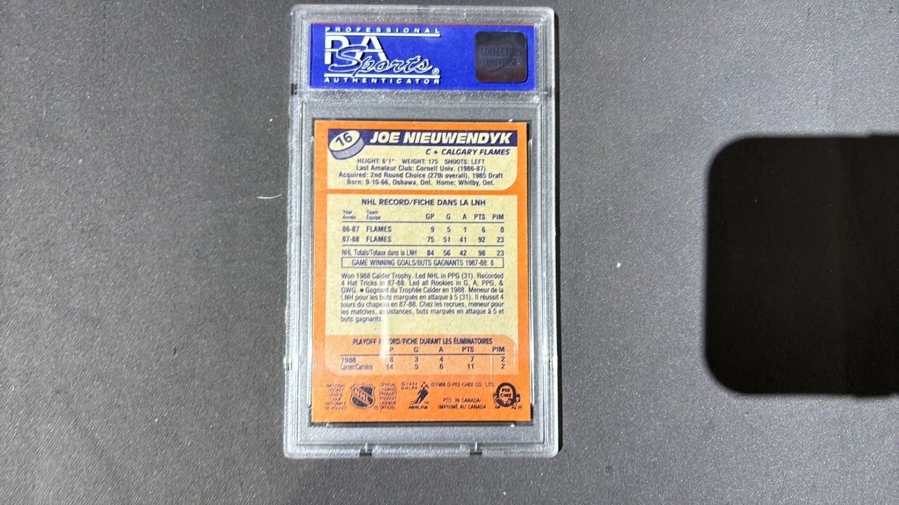 1988 O-PEE-CHEE JOE NIEUWENDYK RC #16, PSA GRADED - 8NM-MT 82499721