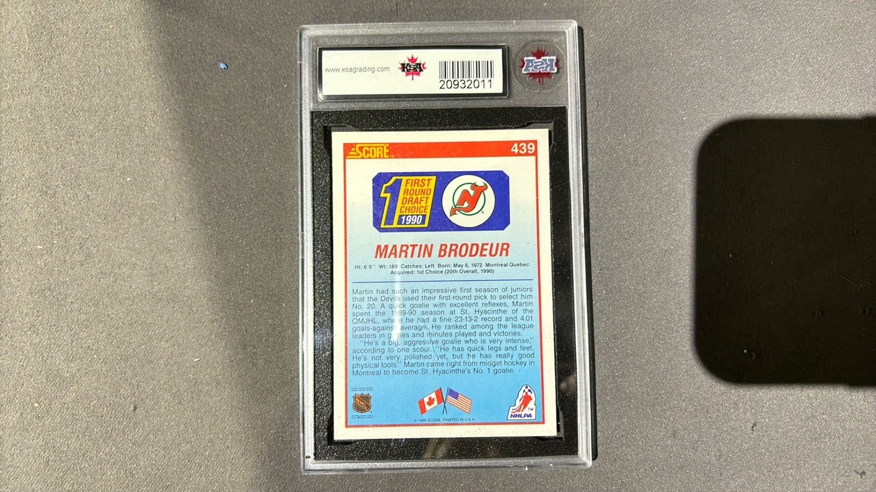 1990-1991 SCORE MARTIN BRODEUR ROOKIE #439, KSA GRADED 7.5NM+