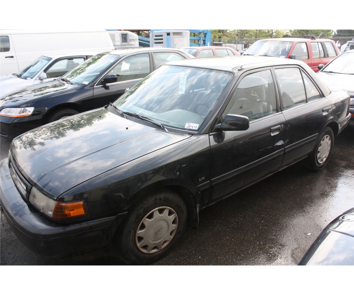 1990 BLACK MAZDA PROTEGE LX 4DR, SDN,  336720 KM, GAS, 1.8L MANUAL, VIN:JM1BG2230L0180947. TTL9 COLLISIONS$4887,71,  2 VANDALISM $571,32 RD,CD,CC,TW, AIR CARE REQUIRED