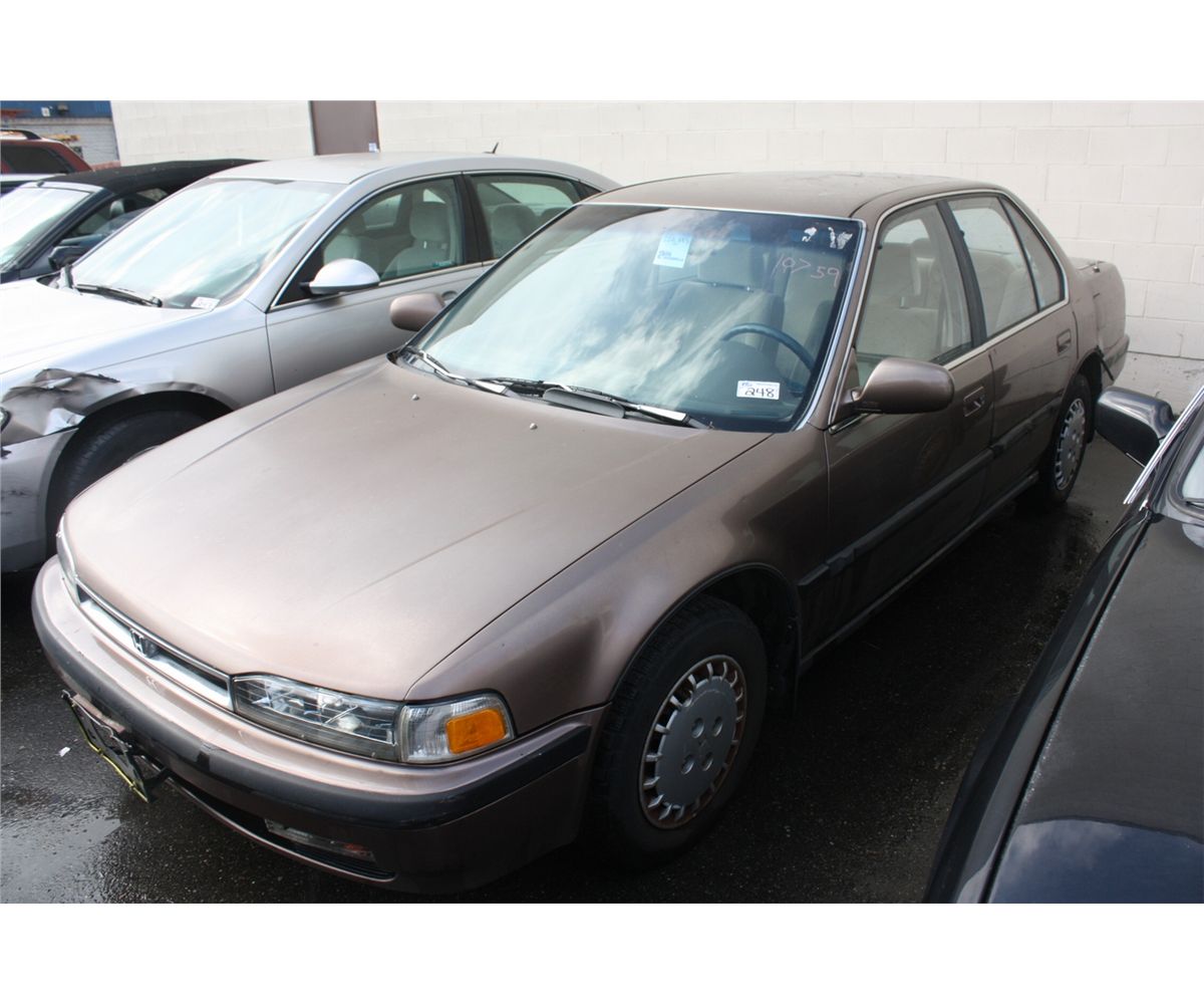 1990 BROWN HONDA ACCORD EX, 4 DR SDN, 220,383 KM,GAS, AUTOMATIC VIN:JHMCB7651LC806451, 5 COLLISIONS HI $8014.51, 3 THEFT FROM VEHICLE HI $1110.29, 2 GLASS HI $857.79, 1 VANDALISM $449.86, PW, CC, PL, TW AC, CR, DEAD BATTERY, AIR CARE REQUIRED