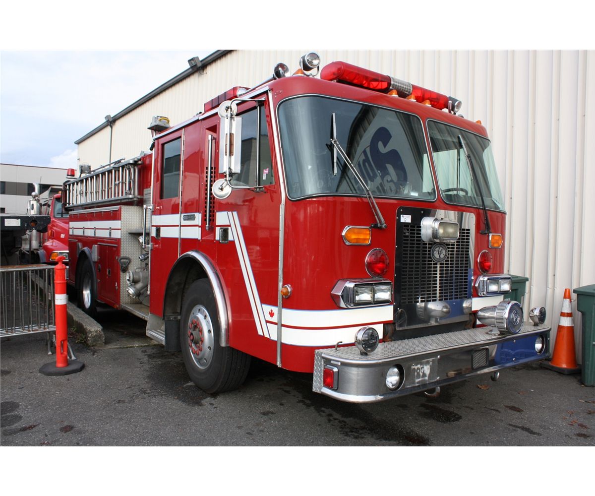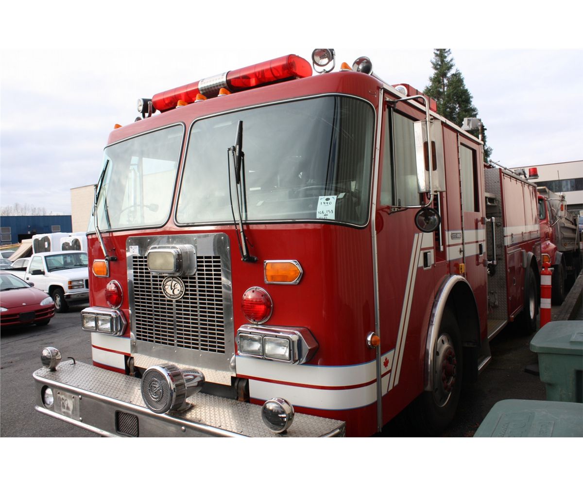 1990 RED SIMON-DUPLEX ANDERSON BODY CLOSED MOTHER INLAW ALLISON AUTOMATIC TRANSMISSION, DETROIT DIESEL, 106,127KM'S, 300 GAL BOOSTER TANK, 30 GALLON CLASS A FOAM TANK, HALE 2 STAGE 1500GPM PUMP, 16,000 FRONT AXLE, 24,000 REAR AXLE