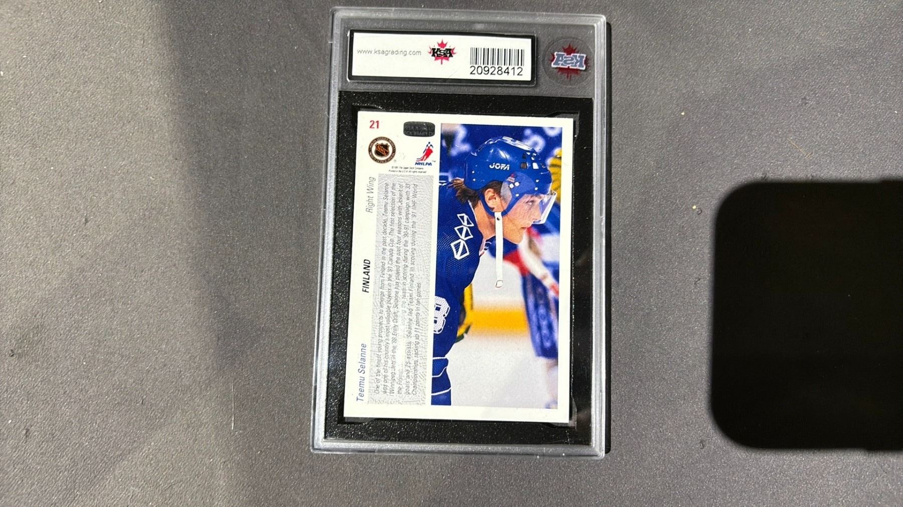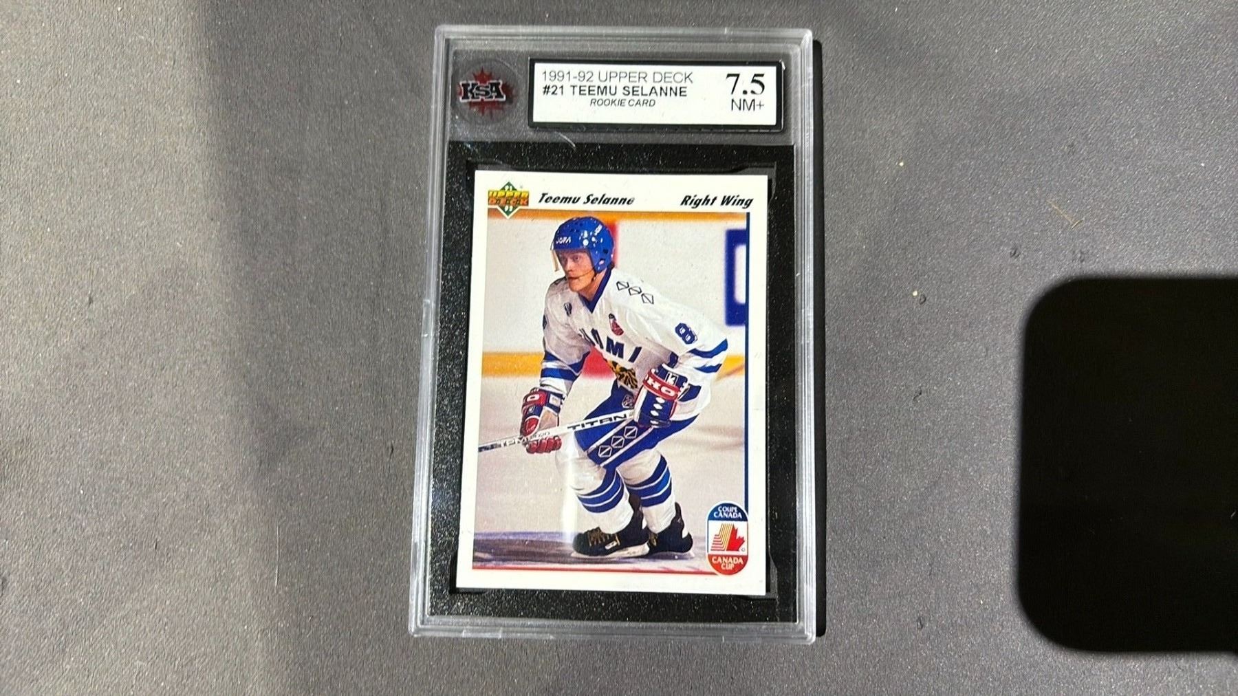 1991-2992 UPPER DECK TEEMU SELANNE ROOKIE #21, KSA GRADED 7.5NM+