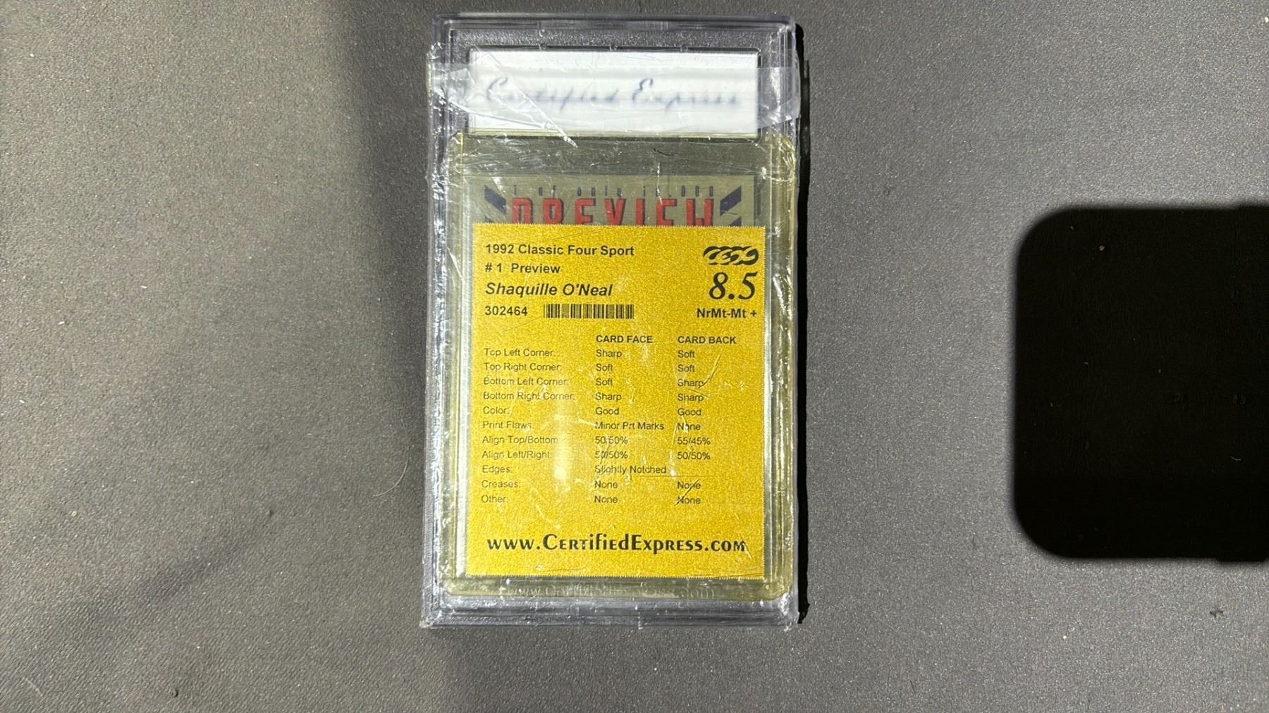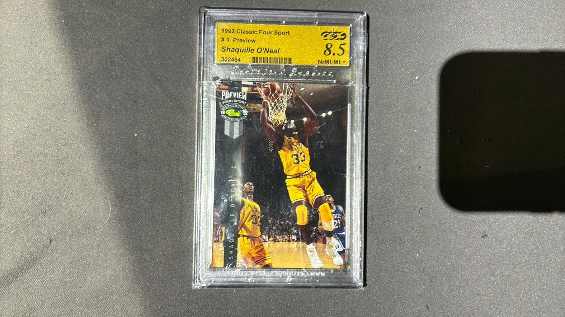 1992 CLASSIC FOUR SPORT SPORT PREVIEW SHAQUILLE O'NEAL ROOKIE #1, CEX GRADED - 8.5 NR. M+-MT+ 302464