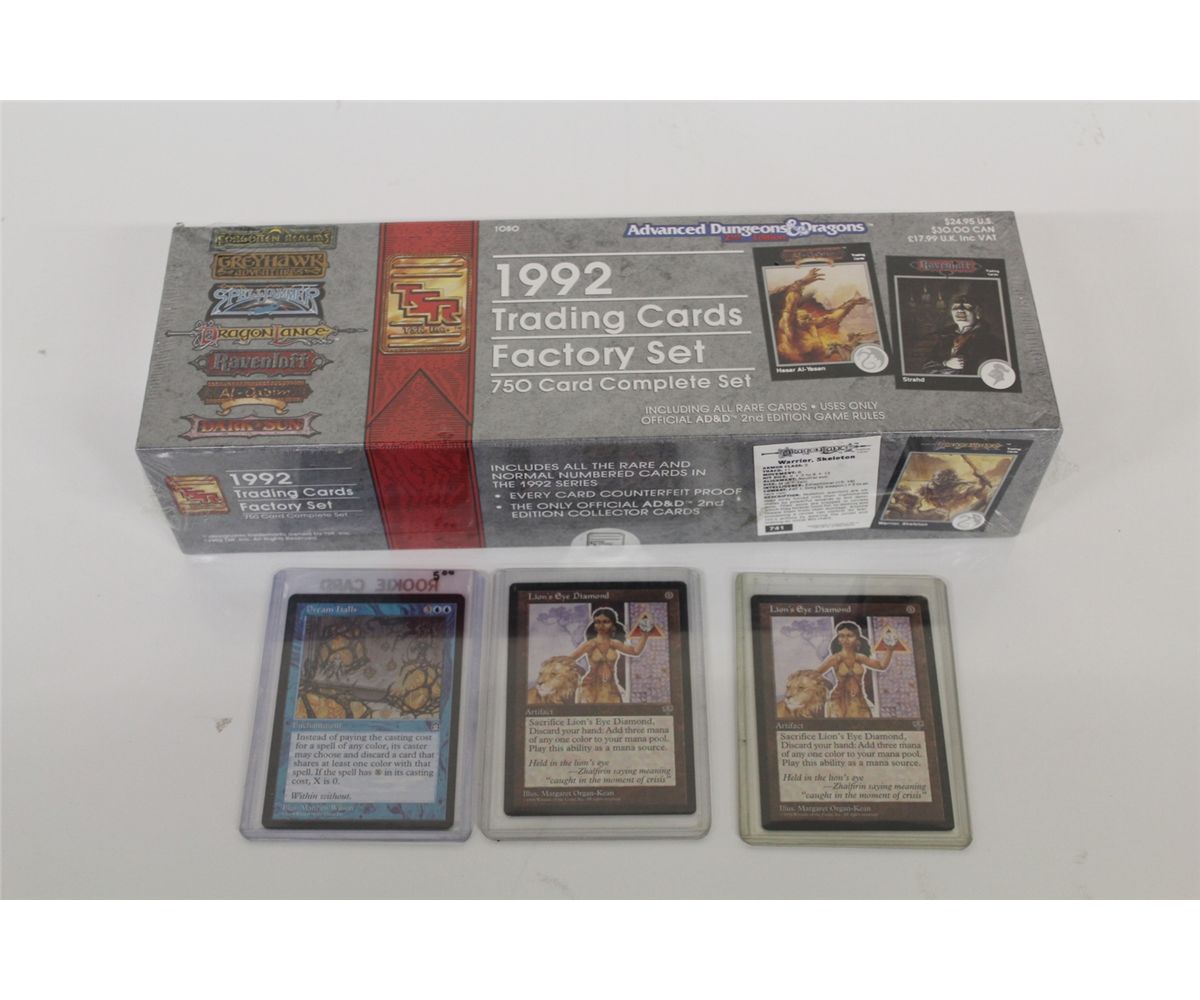 1992 FACTORY SEALED SET OF ADVANCED DUNGEON & DRAGONS PLUS 2 X LION'S EYE DIAMOND MTG CARDS IN HIGH GRADE ALSO 1 DREAM HALLS MTG CARD