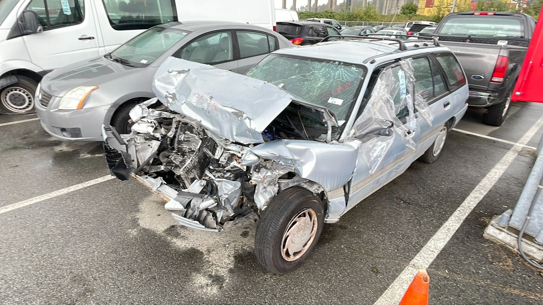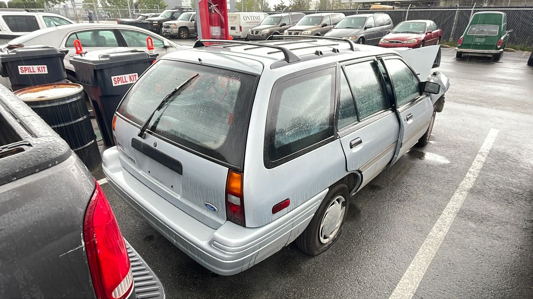 1993 FORD ESCORT LX, 4DR STATION WAGON, SILVER VIN 1FABP15J4PW116827 TMU, GAS (G), AUTOMATIC, REGISTRATION: YES, KEYS: YES *MUST TOW, NO KEYS, NOT SUITABLE FOR TRANSPORTATION*, *REGISTRATIONS LOCATED AT 19757 92A AVE, LANGLEY*, HEAVILY DAMAGED, 3X ICBC NO DETAILS, 3X ICBC REPAIRED DECS TTL $1522.07