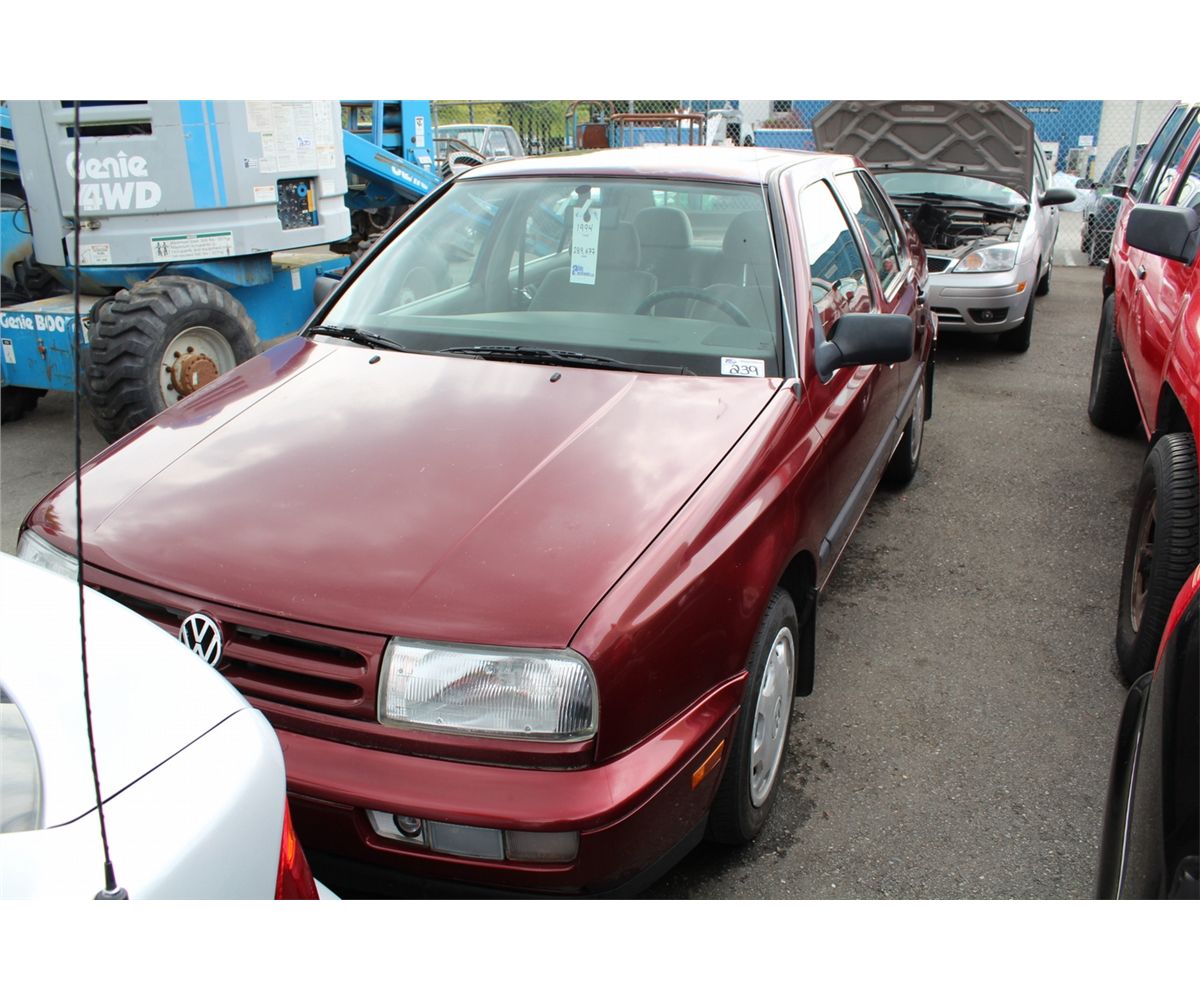 1994 RED VOLKSWAGEN JETTA GL, 4 DR SDN, 289,677 KM DEISEL, 1.9L, 3VWRP01MXRM018424, 2NDC, 1 GLASS $50.29, RD CD PW CC PL TW AC SR , MANUAL AIRCARE CURRENT TILL JUNE 19, 2014, 2 NDC/ 1 GLASS $50.29, REGISTERED IN AB & BC AS NORMAL, PAINT POOR ON ROOF