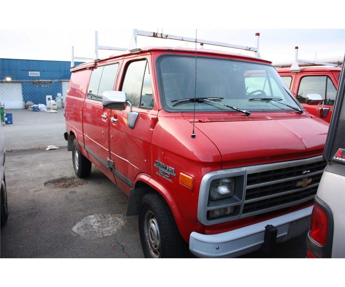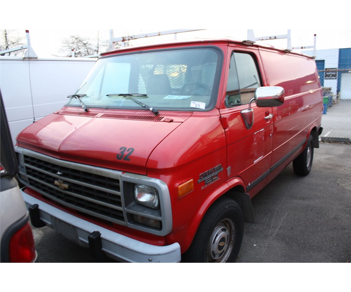 1995 CHEVROLET  VAN 20, CARGO VAN, RED, VIN# 1GCEG25P0SF250860, 140,645KMS, DIESEL, 6.5L, AUTOMATIC, RD,TH,TW, AIRCARE REQUIRED, NO DECS