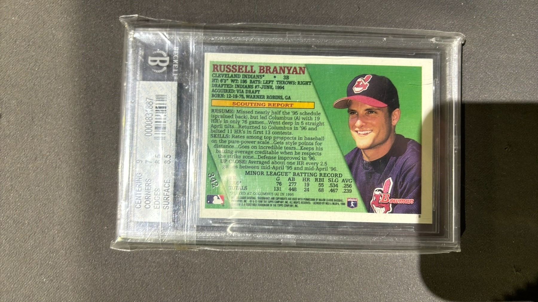 1996 BOWMAN RUSSELL BRANYAN ROOKIE CARD 342, BGS GRADED - 7.5 NM+
