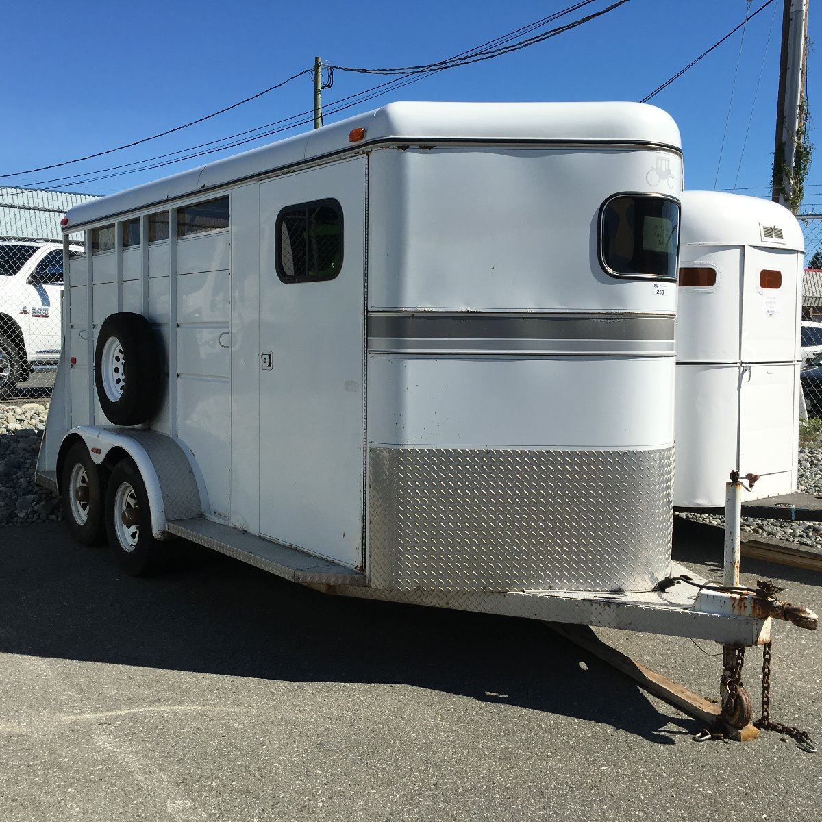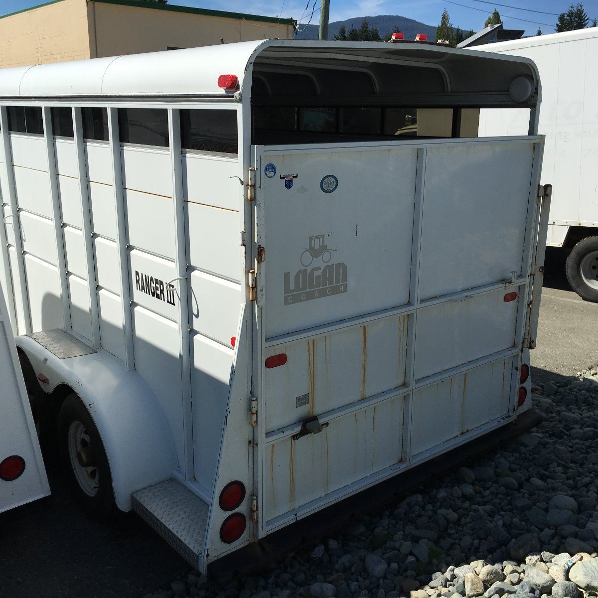 1996 LOGAN RANGER III TANDEM AXLE HORSE TRAILER, WHITE, VIN#1XUAC1822TA014662 ORGINATED OUT OF PROVINCE NOW REGISTERED IN BC *NO KEYS*