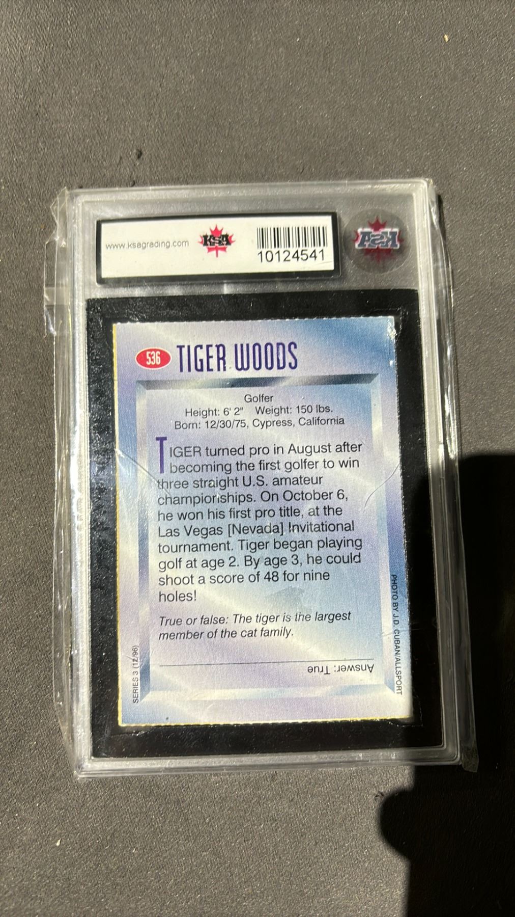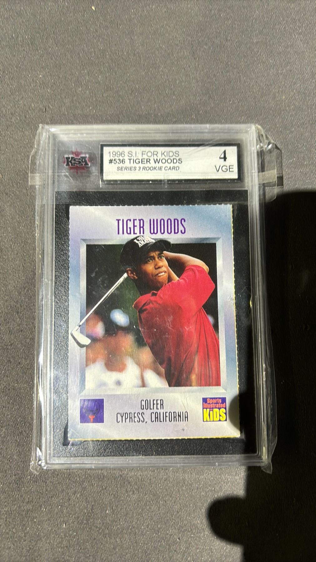 1996 SPORTS ILLUSTRATED FOR KIDS, TIGER WOODS, SERIES 3 ROOKIE #536 (KSA GRADED 4VGE)