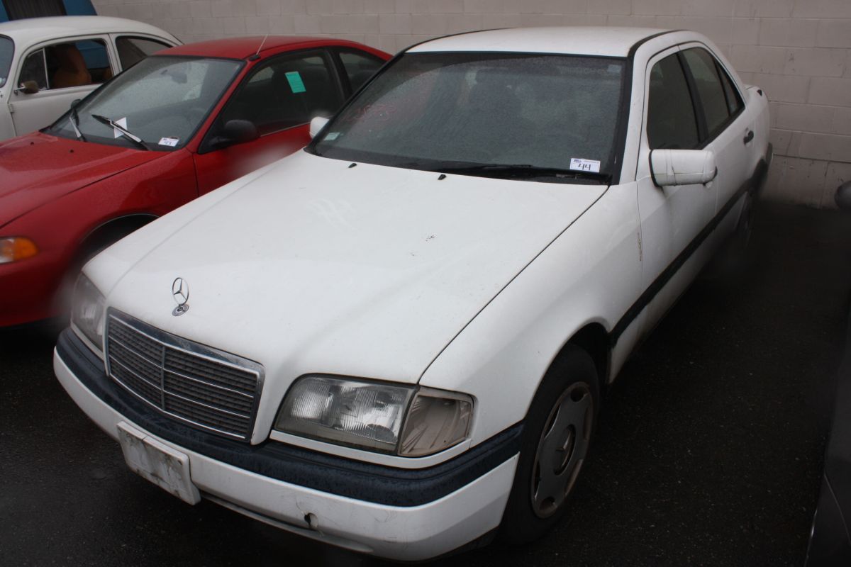 1996 WHITE MERCEDES C220 4DR SDN TMU GAS AUTOMATIC VIN:WDBHA22E4TF314013 - 5 COLLISIONS TTL $9,171.33 - NO KEYS - AIRCARE CURRENT TILL MAY 9/13 DOES NOT MEET MVA REQUIREMENTS -MUST TOW