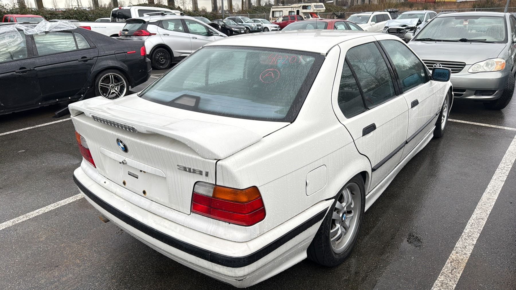 1997 BMW 318I, 4DR SEDAN, WHITE, VIN WBACC0329VEK24070 TMU, GAS (G), AUTOMATIC, HAS REGISTRATION, NO KEYS, FEATURES: RADIO, COMPACT DISC, POWER WINDOWS, ALL WHEEL DRIVE, CRUISE CONTROL, POWER LOCKS, TILT WHEEL, AIR COND, LEATHER TRIM, SUNROOF, *MUST TOW, NO KEYS, NOT SUITABLE FOR TRANSPORTATION*, 1 X NO DETAILS, 5 X ESTIMATE $14,512.78, 7 X REPAIRED $13,481.04