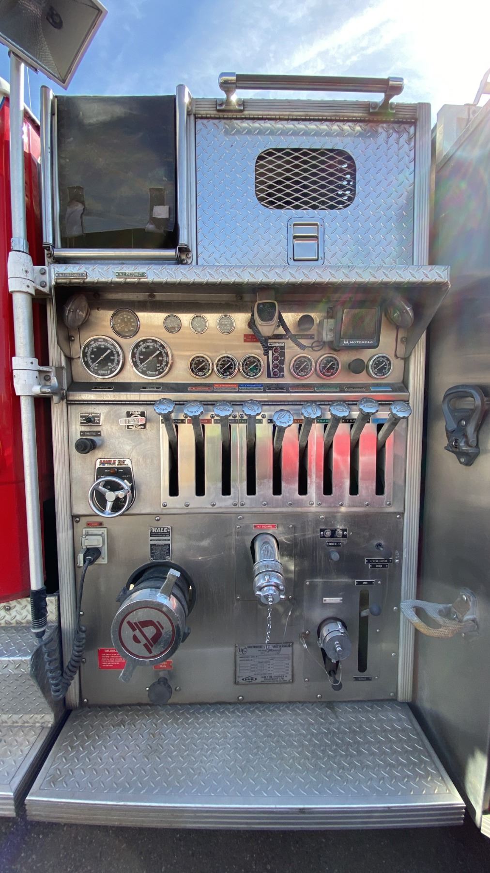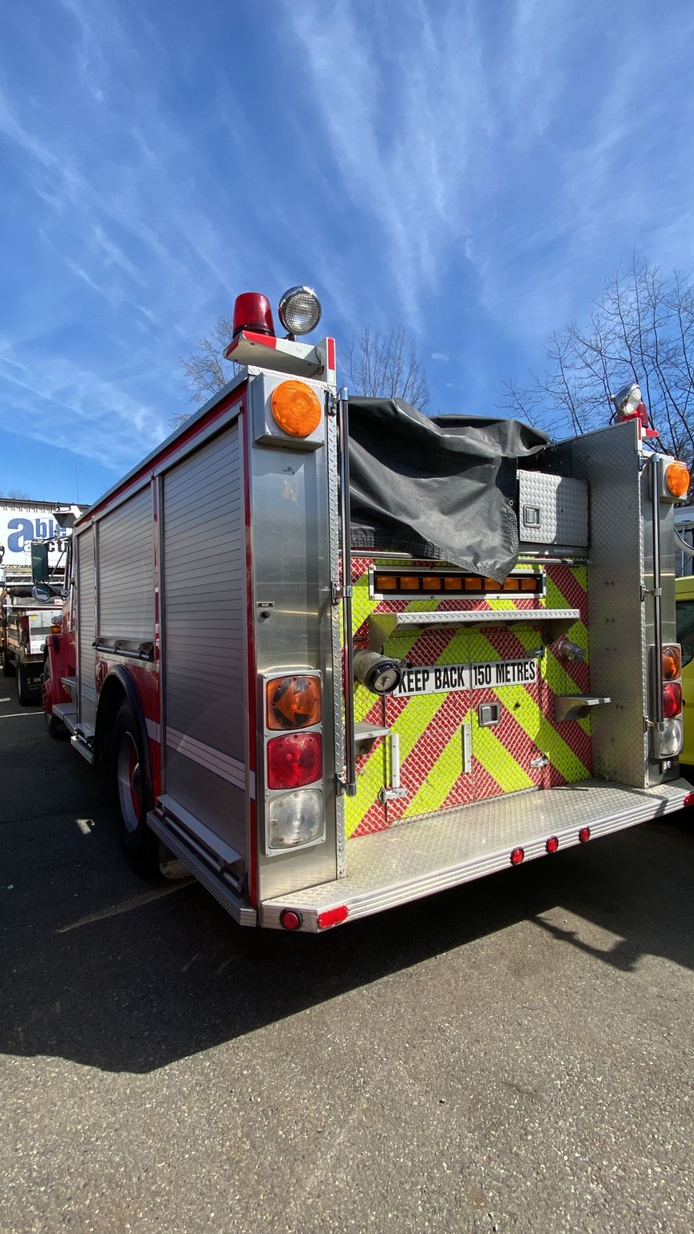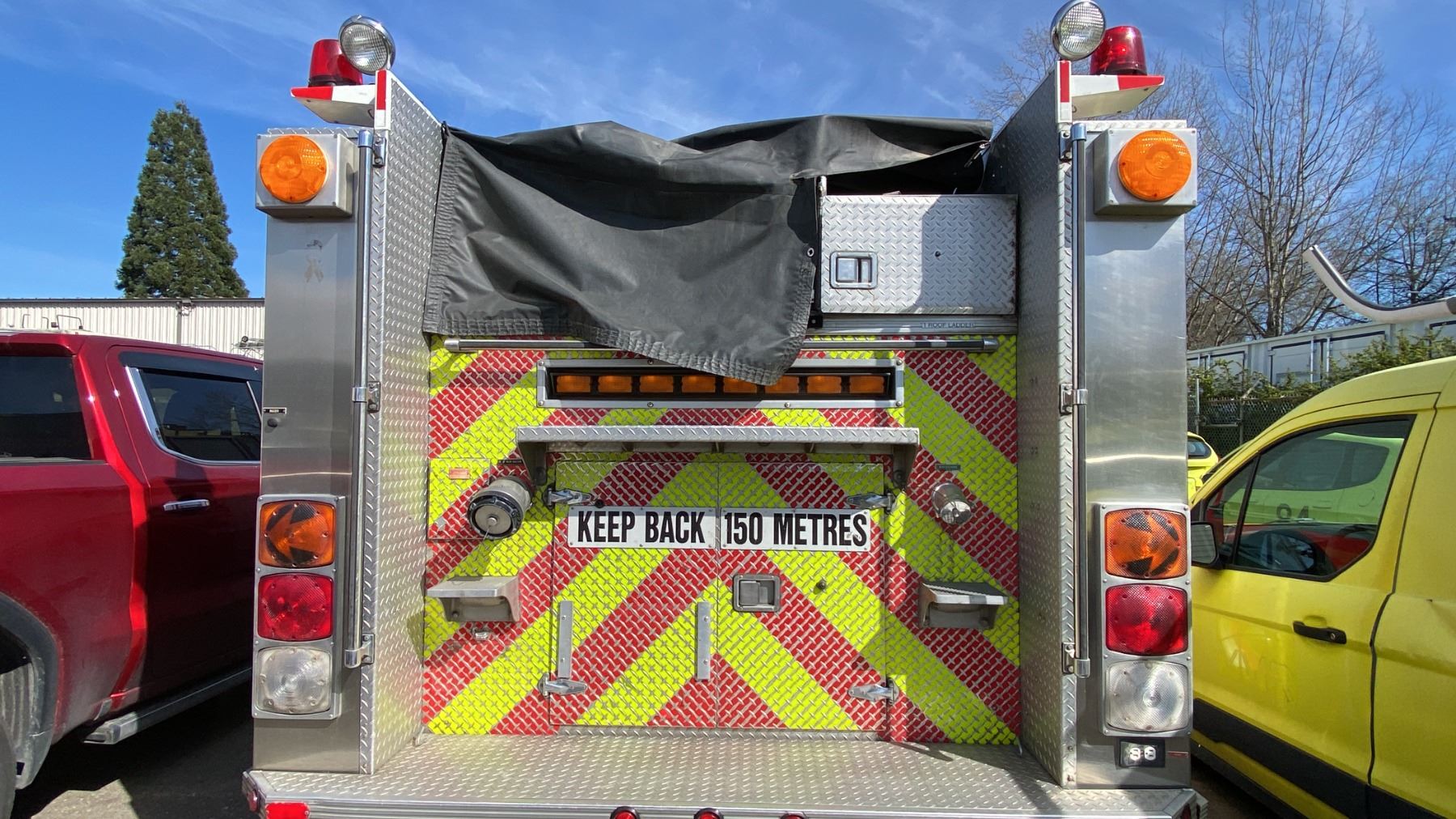 1997 FREIGHTLINER FL70, 2DR PUMPER, WHITE, VIN 1FV6HLCA8VH784322, 425,507 KMS, DIESEL (D), AUTOMATIC, HAS REGISTRATION, HAS KEYS, FEATURES: RADIO, TILT WHEEL, HISTORY: X-EMERGENCY,1 ICBC REAPIRED DECLARATION $32,185.18, 2 SEAT FIRE RESCUE, SINGLE AXLE, HALE DSD100-23L PUMPING STATION, SIDE ROLL UP SERVICE BOXES, HUB BOXES, LIGHTS, KILL SWITCH UNDER DRIVER SEAT, AIR BRAKES, U-COM CODE 3 HORN RADIO, ABS LIGHT ON