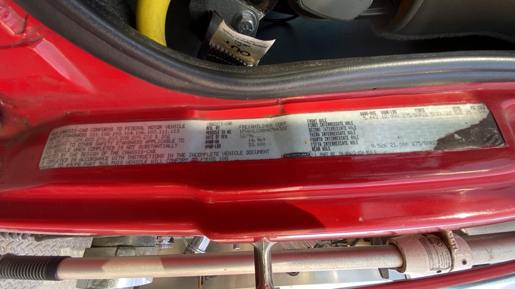 1997 FREIGHTLINER FL70, 2DR PUMPER, WHITE, VIN 1FV6HLCA8VH784322,