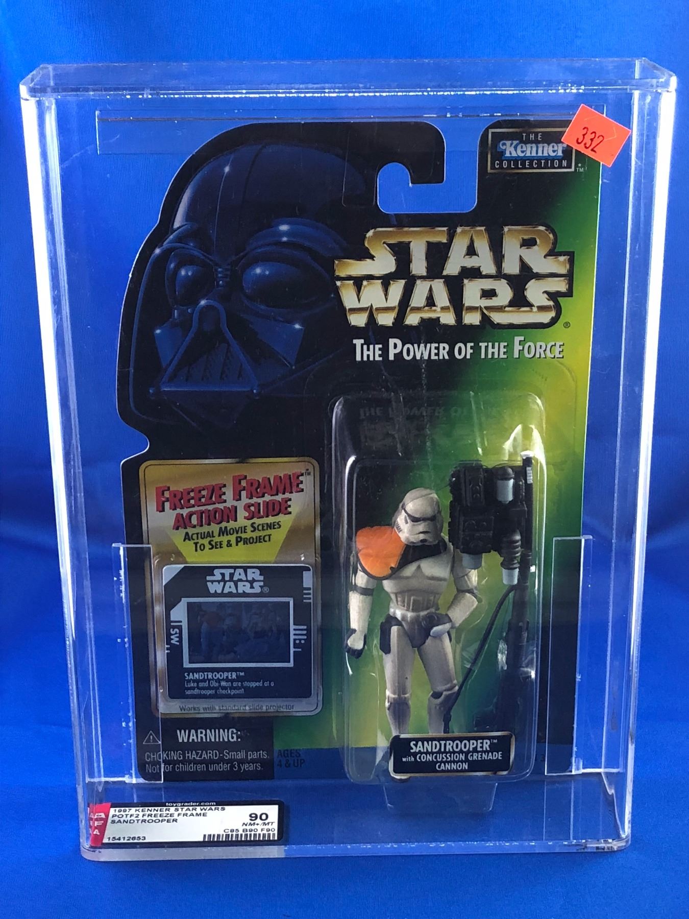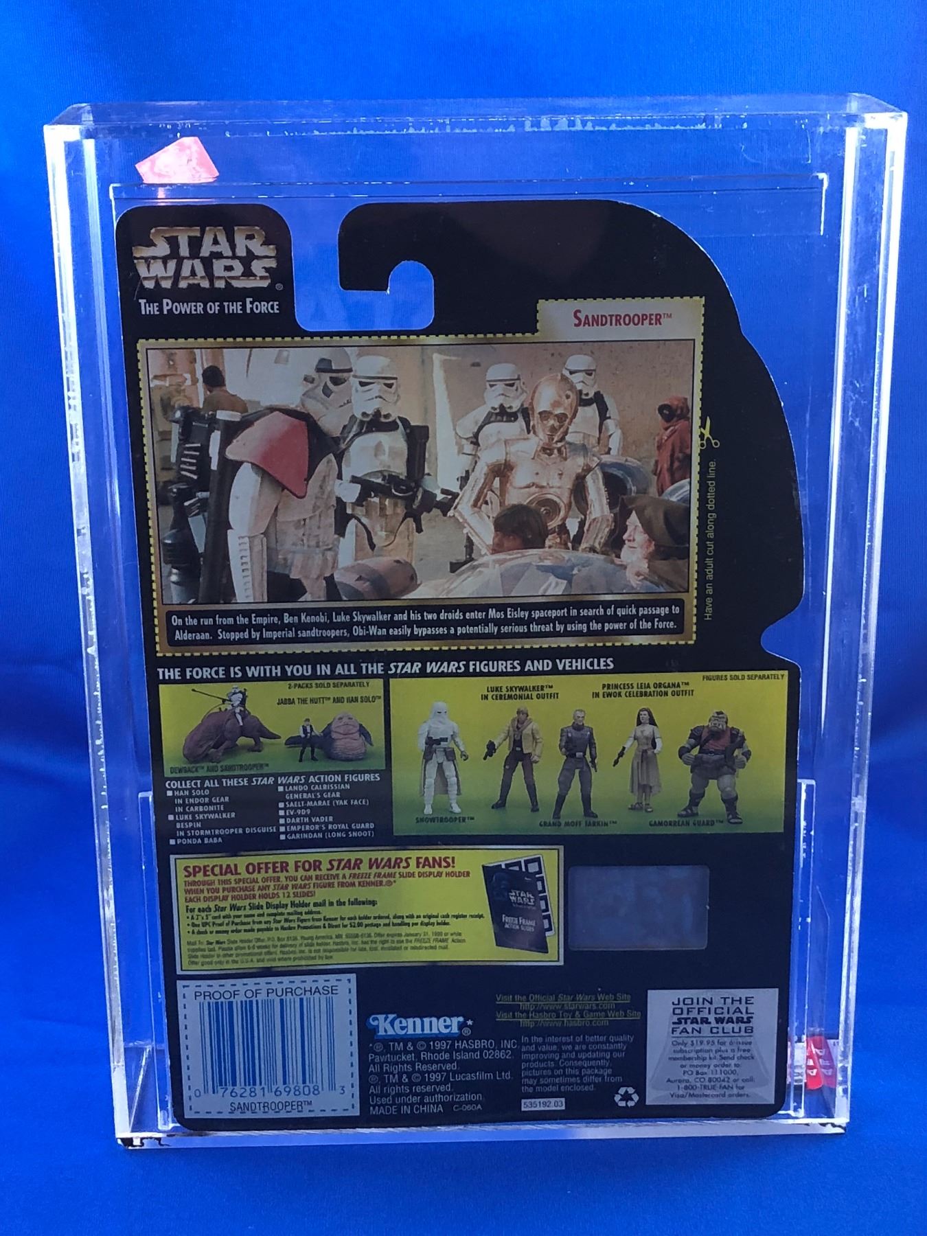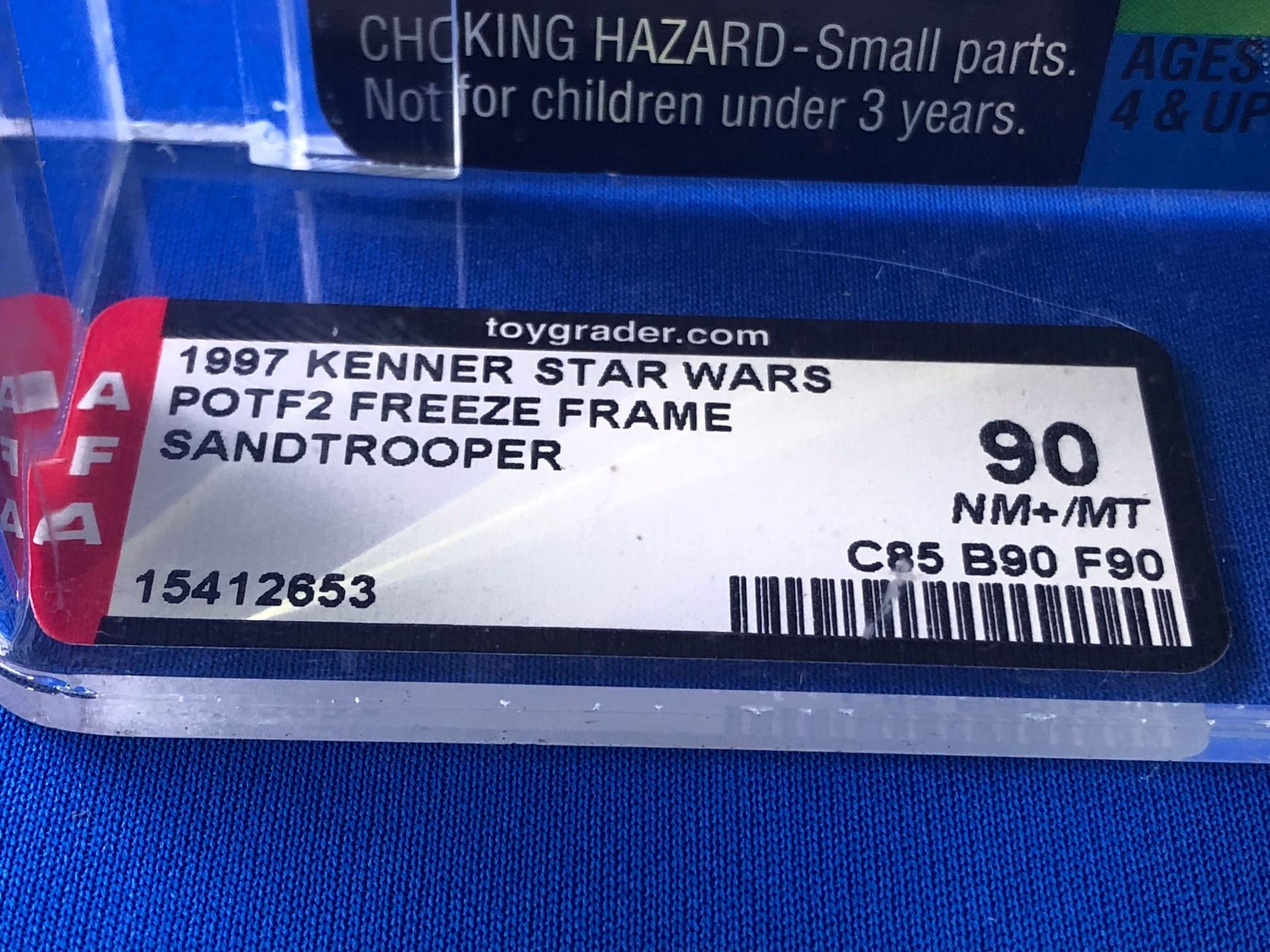 1997 KENNER STAR WARS THE POWER OF THE FORCE 2 FREEZE FRAME SANDTROOPER FIGURE IN ORIGINAL PACKAGE AFA GRADED 90 NM+/MT