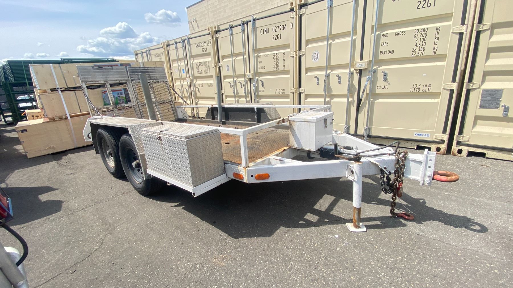 1997 UBILT TRAILER WHITE VIN NIL HAS REGISTRATION HISTORY: X-CITY, REBUILT 16' TOTAL LENGTH, 12' DECK 5' WIDE, 4' DROP DOWN RAMP, ALUMINUM TOOLBOX AND BATTERY BOX WITH BATTERY, NO ICBC INFORMATION AVAILABLE