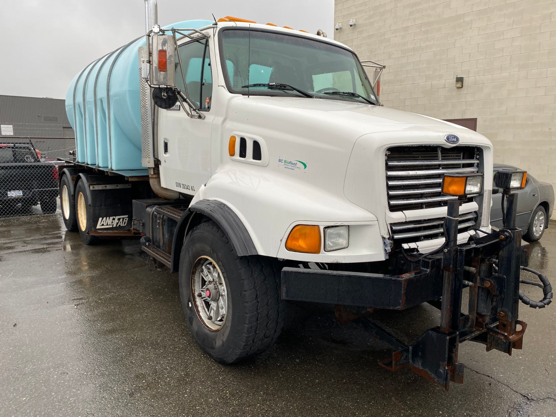 1998 FORD 2WHDR, WHITE, DIESEL, MANUAL, VIN#1FDZS96D4WVA18289, 321,619KMS, RD,CD,CC, RIGGING FOR FRONT PLOW, LIQUID DEICING UNIT, CENTER PLOW UNIT ATTACHMENT, 1 ICBC DECLARATION NO DETAILS, 5 ICBC REPAIRED DECLARATIONS $3059.10, 2700 IMPERIAL GALLON LIQUID DEICING TANK, CENTER UNDER CARRIAGE SCRAPER BLADE