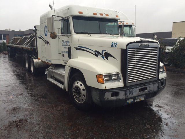 1998 FREIGHTLINER WHITE VIN # 1FUYDSZB2WP757725 ODO READS 155,932KMS, DIESEL EATON FULLER TRANSMISSION SLEEPER AND REFRIDGERATOR RD, AC, NO DECS